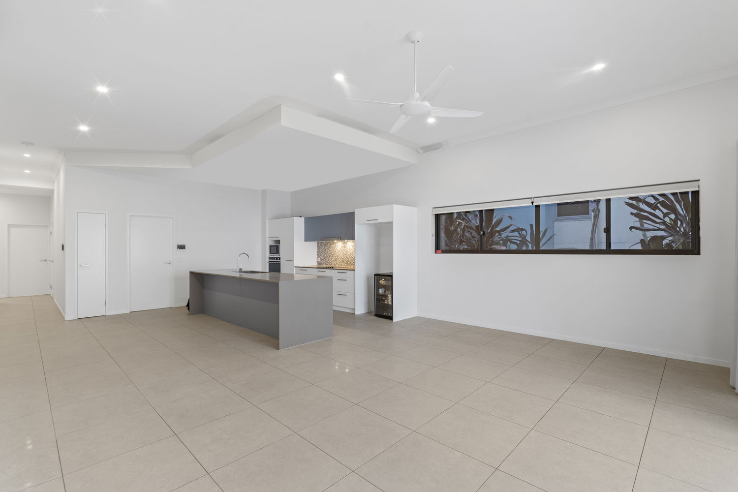 • Open-plan living and dining with high ceilings and tiled flooring