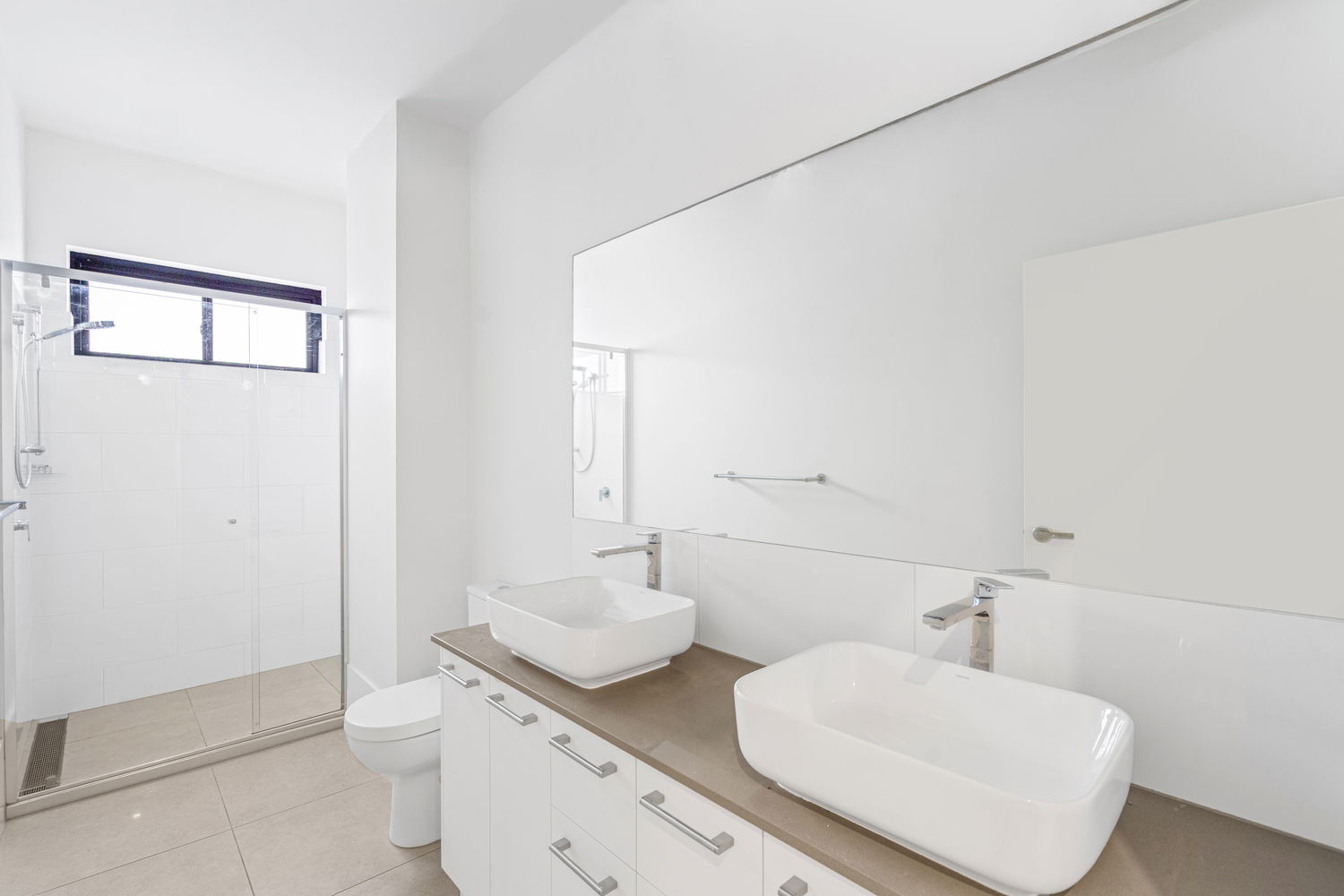 • Modern bathrooms with stone vanities and spacious showers