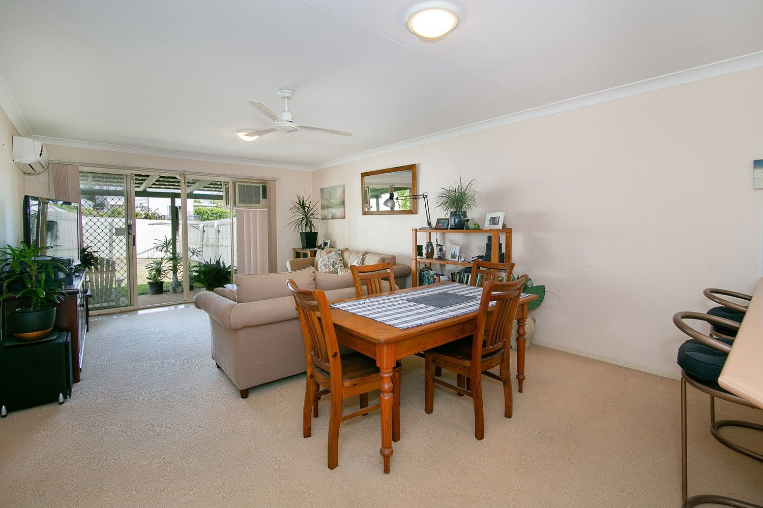 # Open plan living and dining area with Air Conditioning