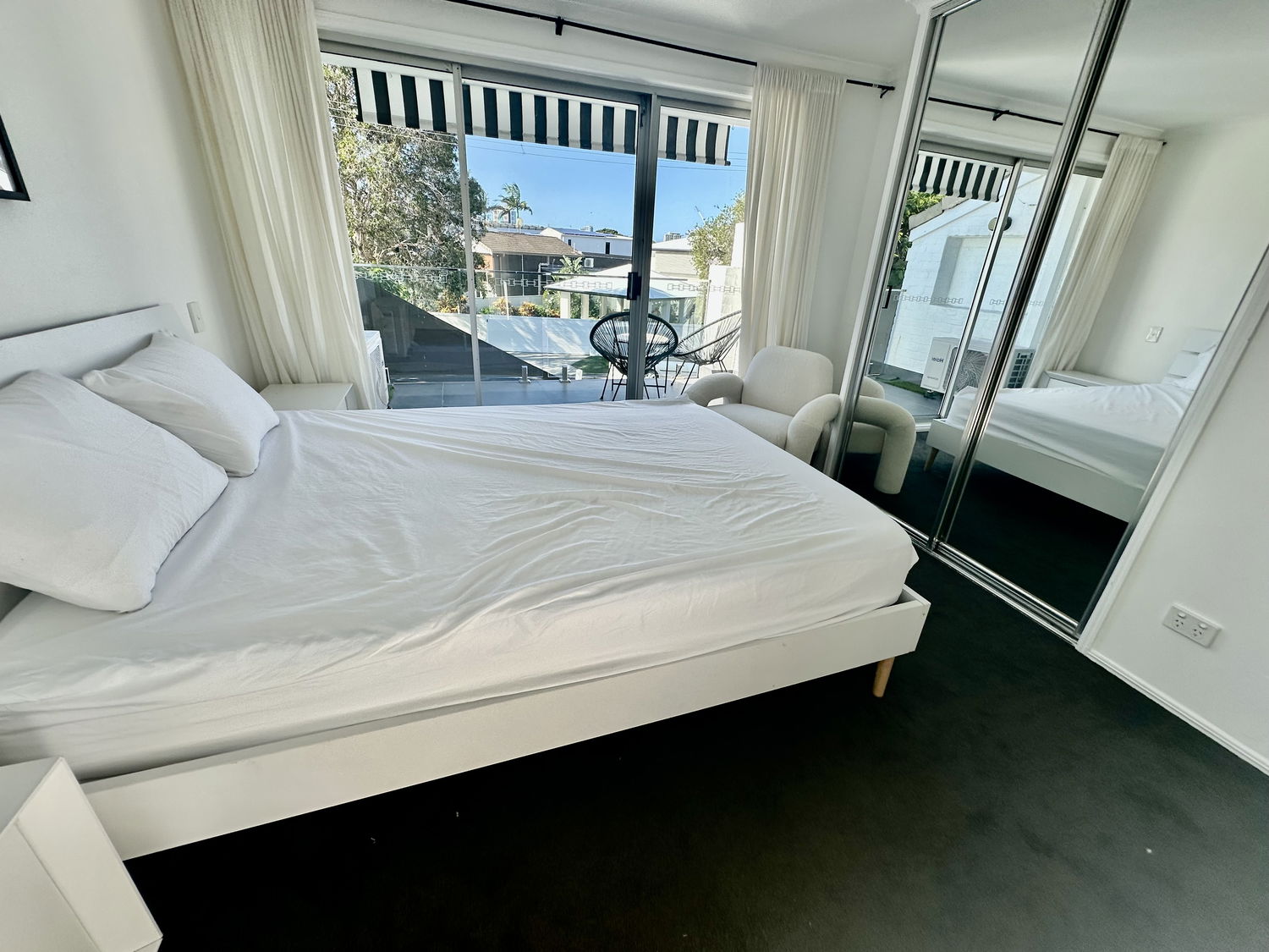 Both residences feature fully equipped modern kitchens, large separate living and dining zones, air-conditioning throughout, ceiling fans, plantation shutters and LED lighting. Balconies capture stunning skyline views, while the private side courtyard and alfresco entertaining area are perfect for relaxed waterfront living.