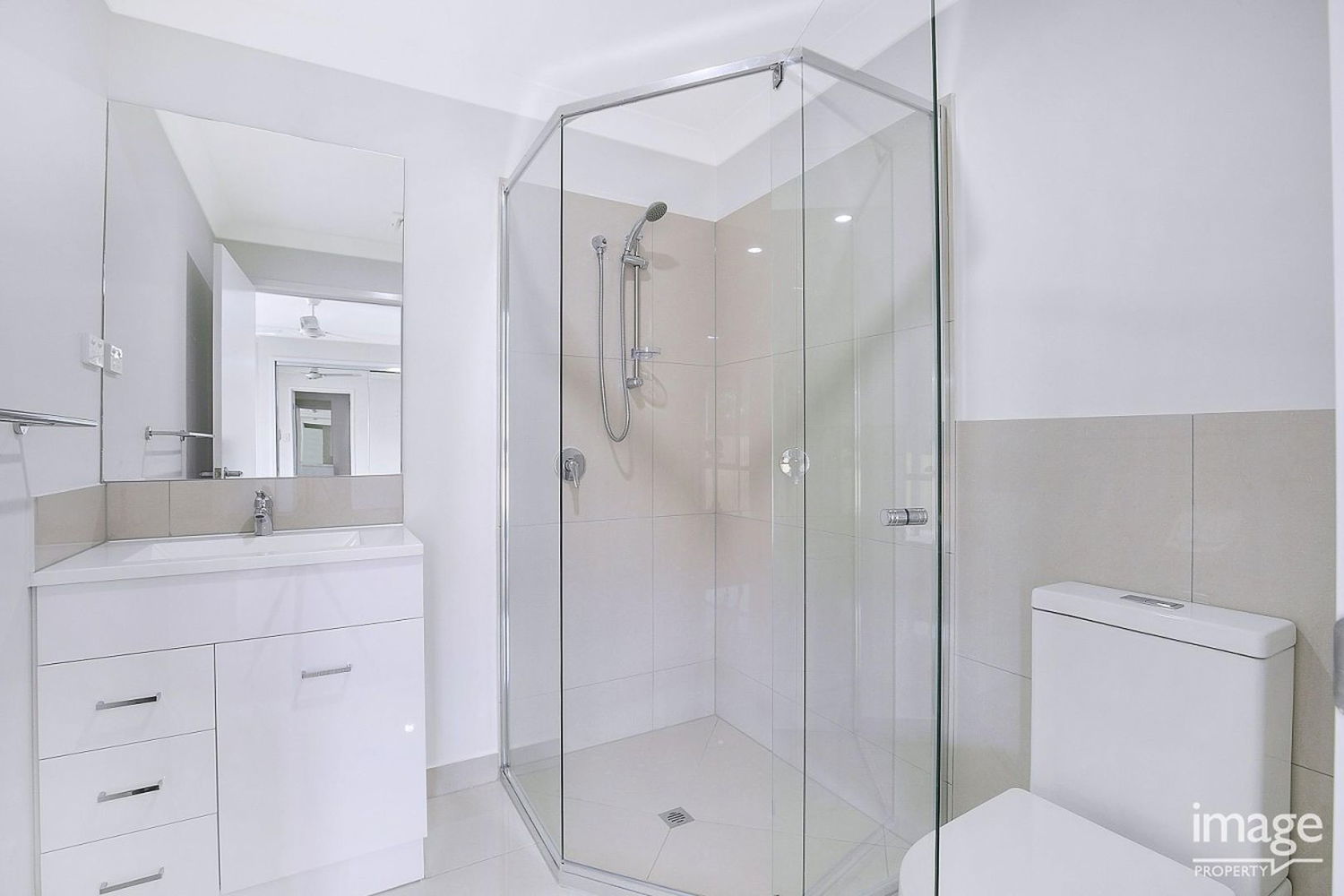 # Ensuite has single shower cavity and storage to vanity.