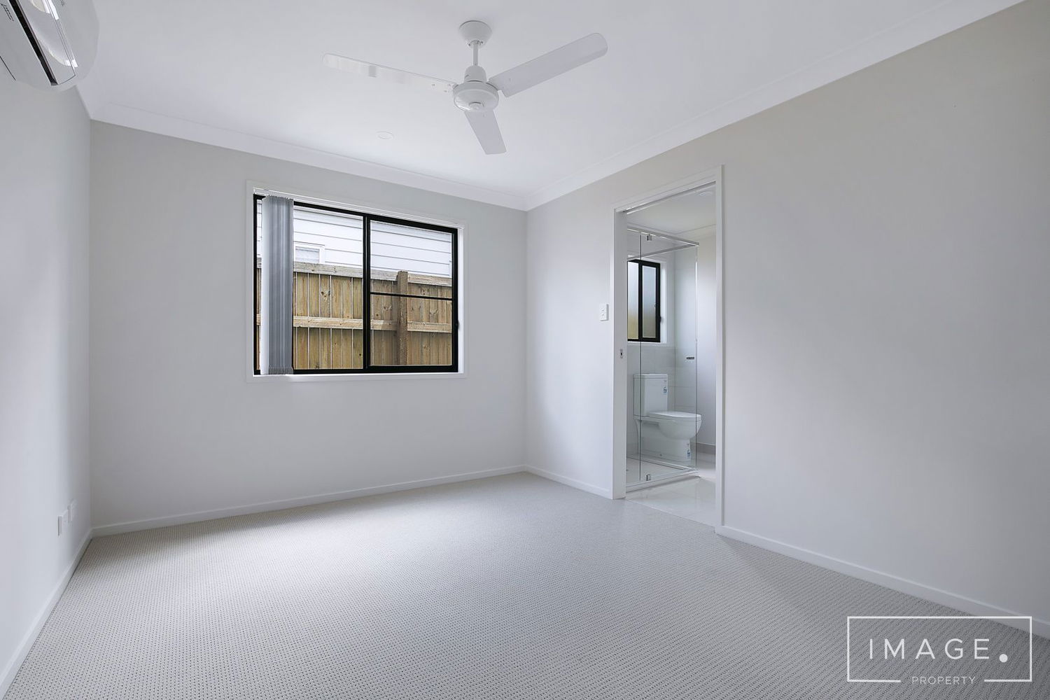 # Main Bedroom with air-conditioning, ceiling fan, built-in wardrobe, and private ensuite.