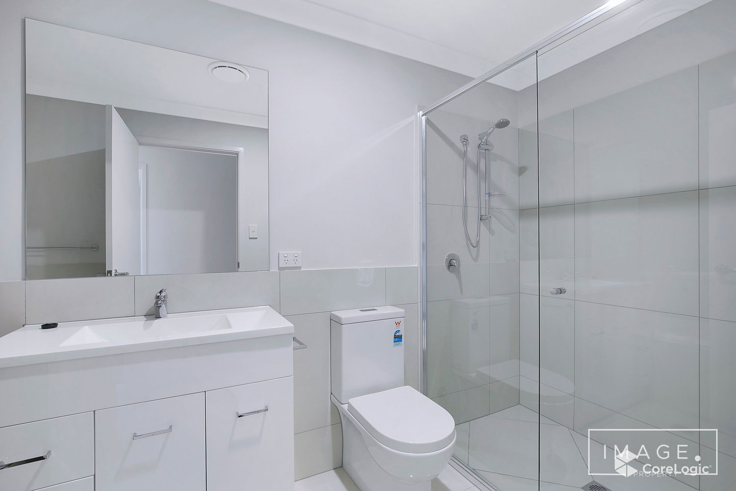 # Ensuite with single shower, toilet and ample storage to vanity.