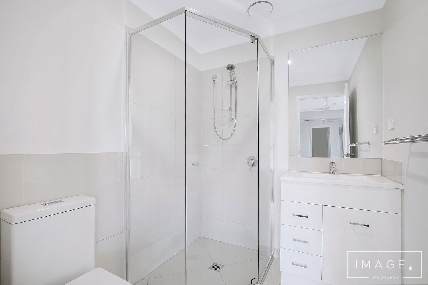 # Ensuite with single shower, toilet and ample storage to vanity.