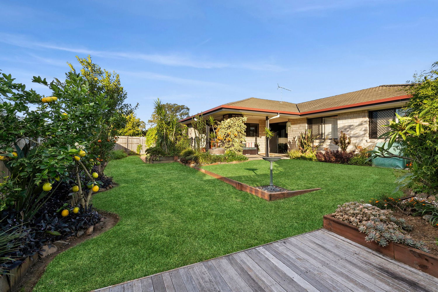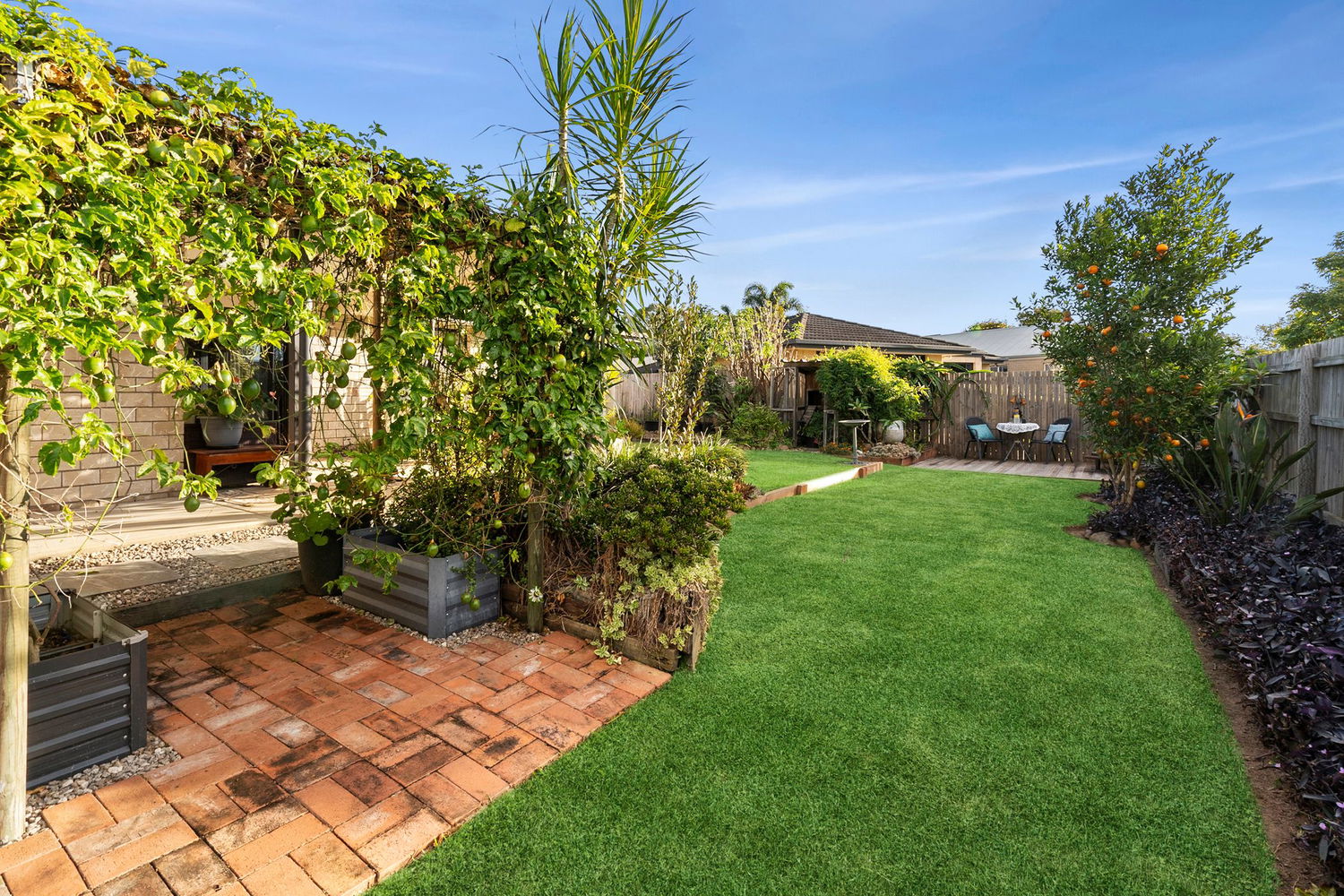 # Beautifully landscaped backyard featuring a variety of fruit trees including passionfruit vine, avocado, mandarin, lemon, dragon fruit, cherry tomato, elderberry, and bay leaf – all maintained with exceptional care