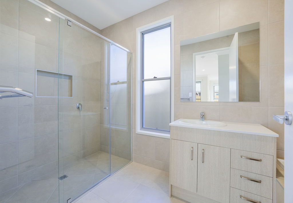 # Ensuite with large shower cavity and ample storage to vanity.