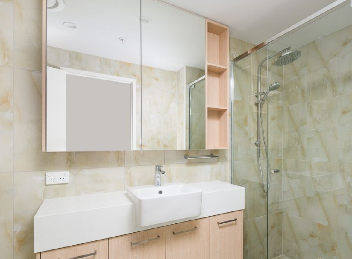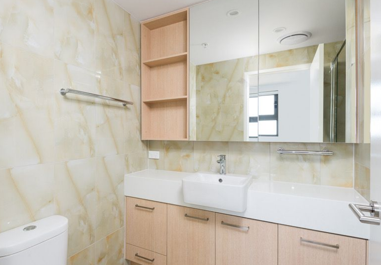# 2 stylish bathrooms with floor-to-ceiling tiling & ample cabinetry