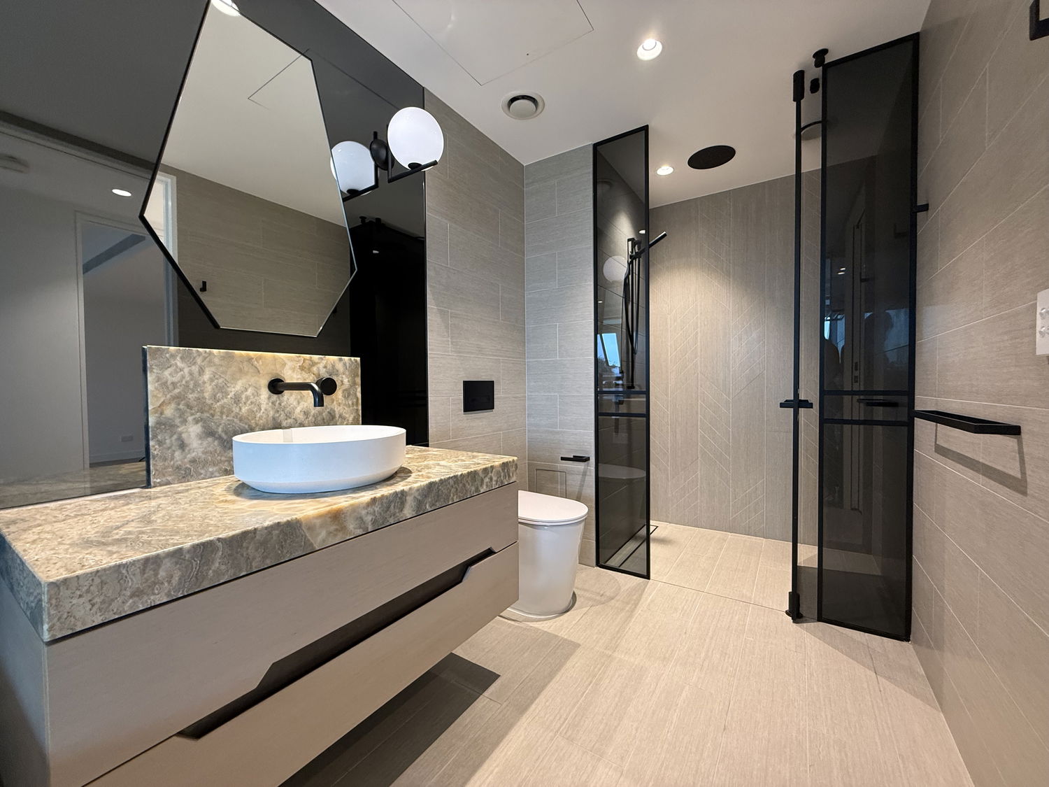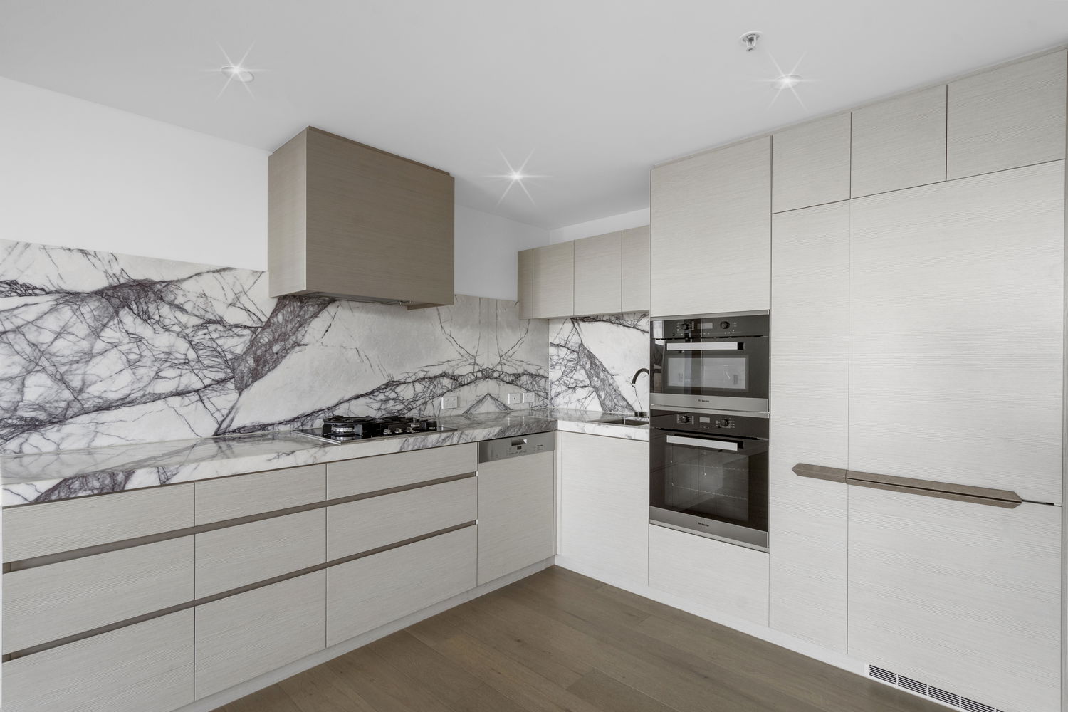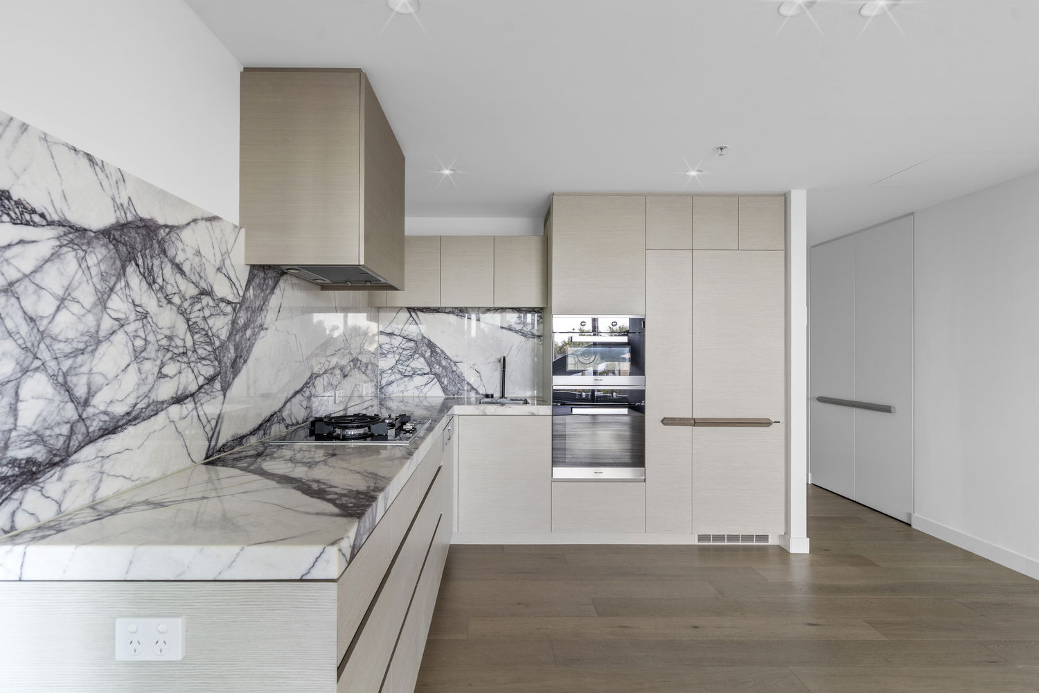 • Modern kitchen with stone benchtops