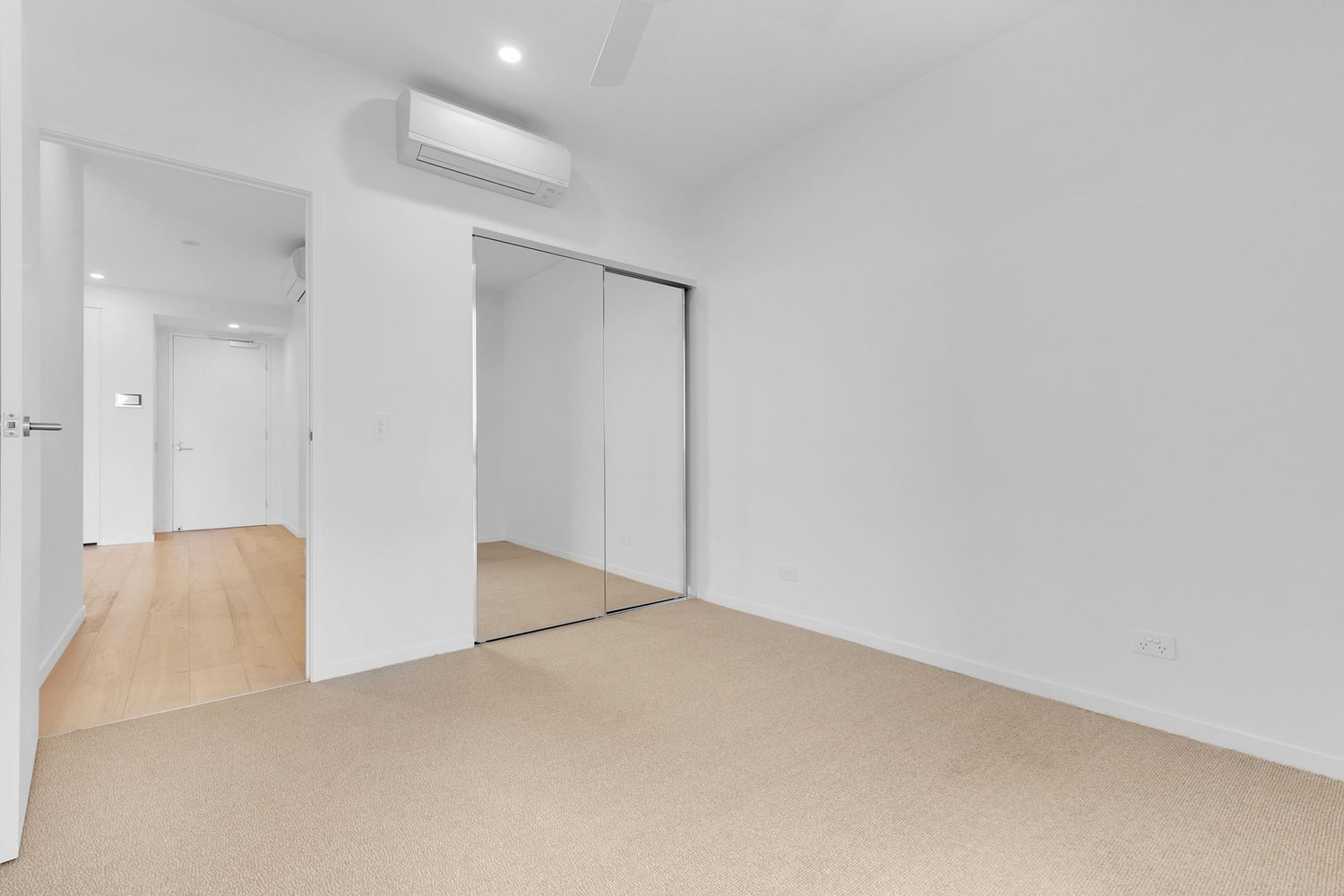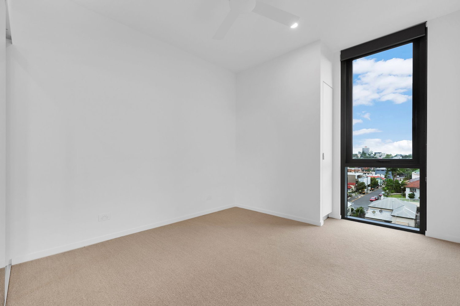 # Main bedroom with views over West End, air-conditioning, ceiling fans and mirrored wardrobes