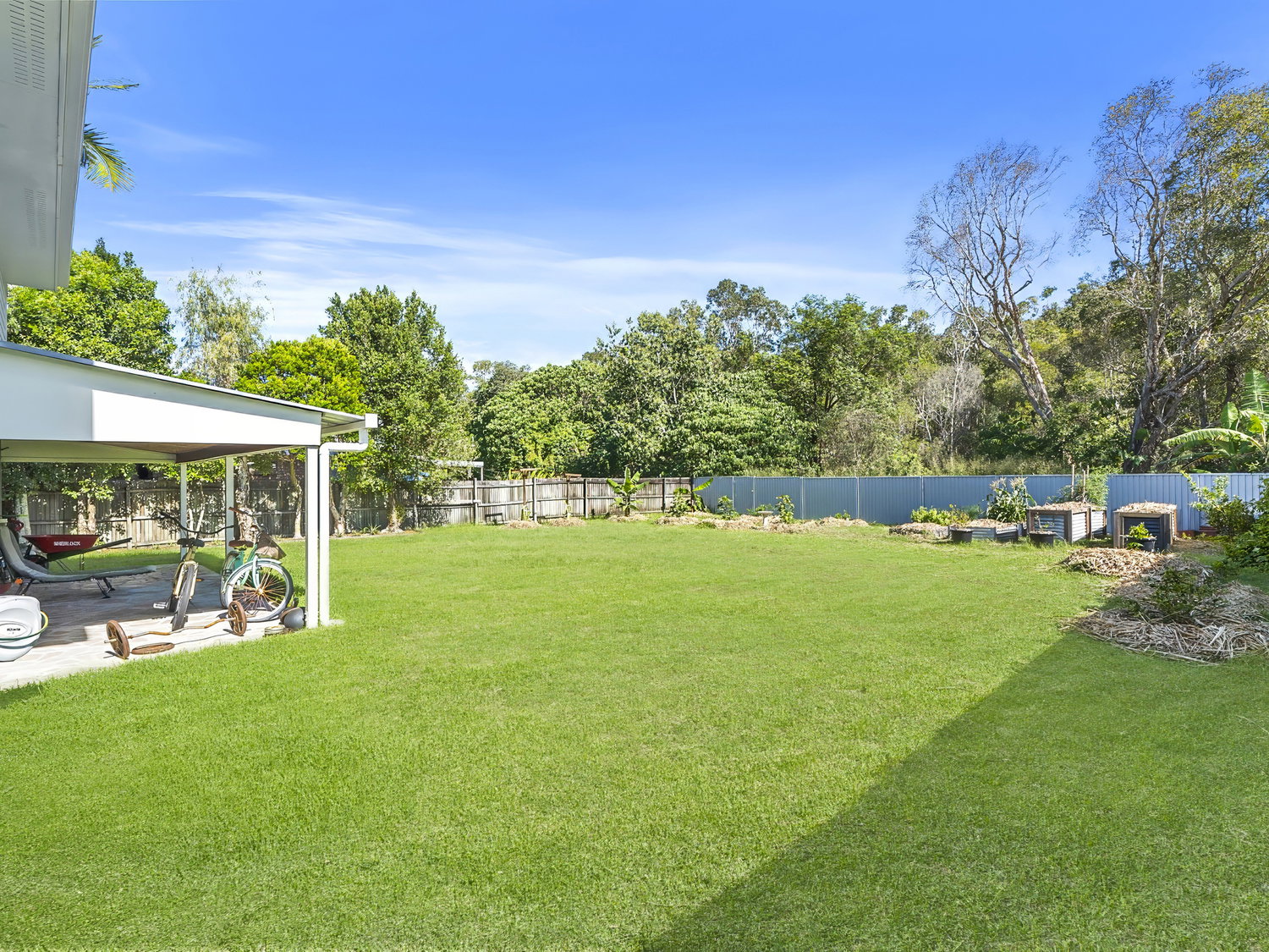 # Large fully fenced backyard backing onto leafy reserve