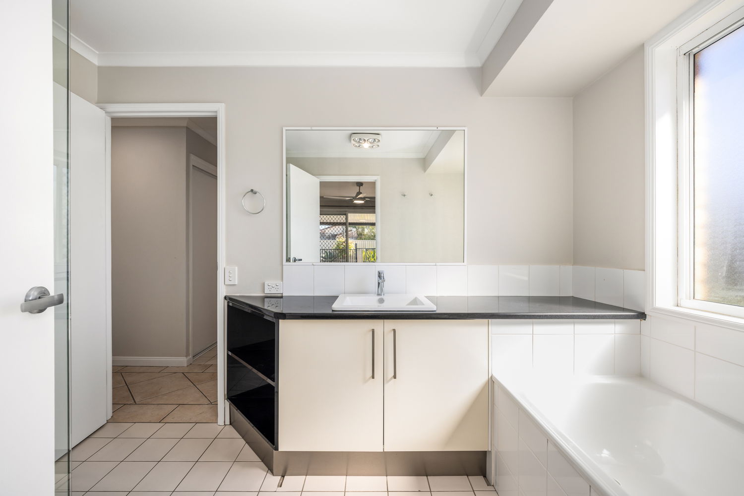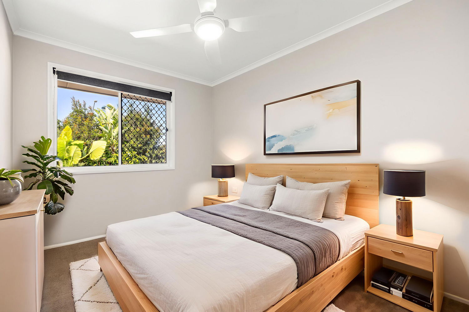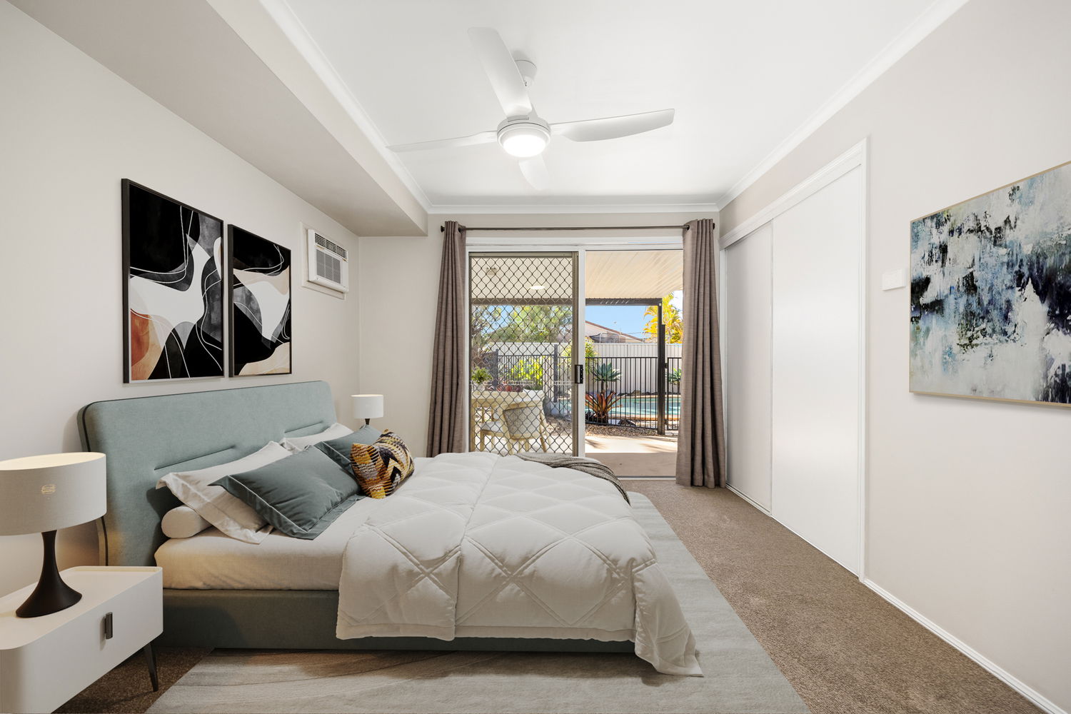 # Master bedroom with air conditioning, ceiling fan and sliding door to alfresco