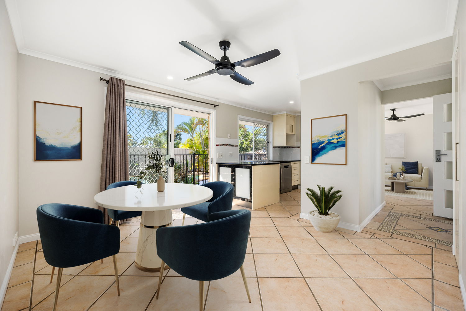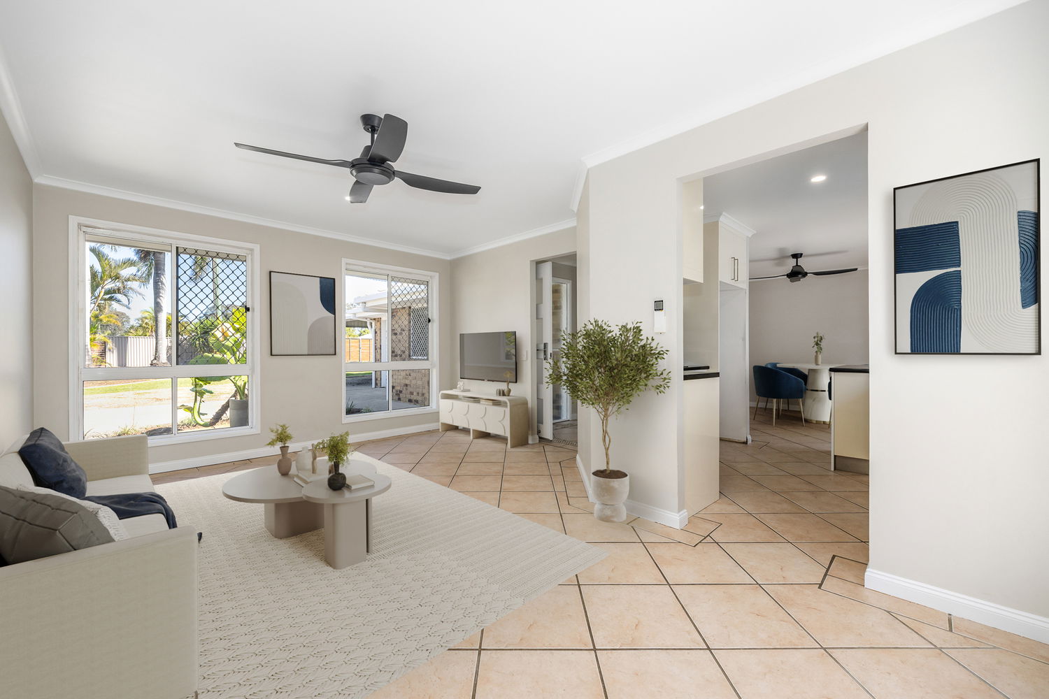 # Open-plan living/dining with ceiling fans and air conditioning