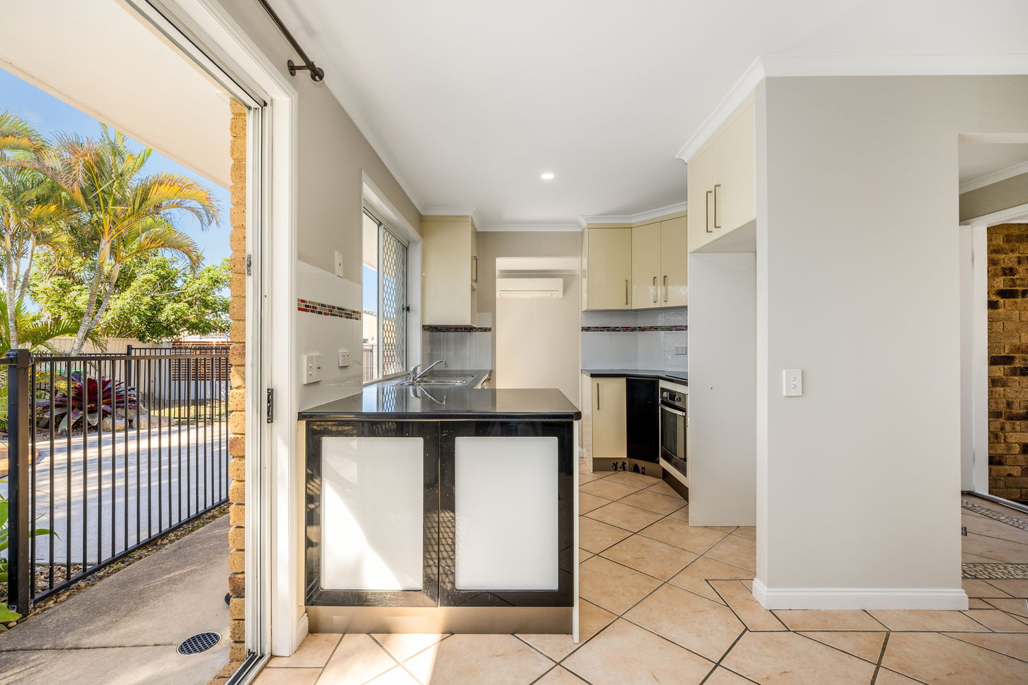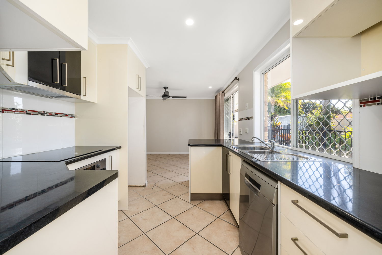 # Modern Kitchen with dishwasher, electric cooking & pool outlook