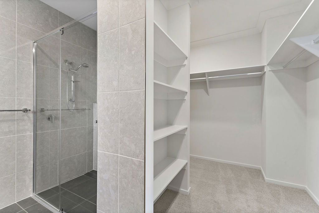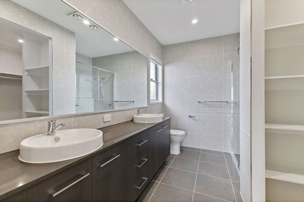 # Ensuite with large shower cavity and ample storage to vanity.