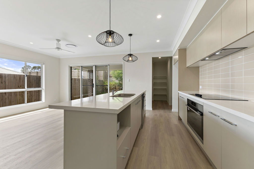 # Large Spacious Kitchen complete with quality stainless steel appliances inclusive of dishwasher, electric cooktop, oven & rangehood. Ample storage with butlers pantry with additional storage and island bench also doubling as breakfast bar.