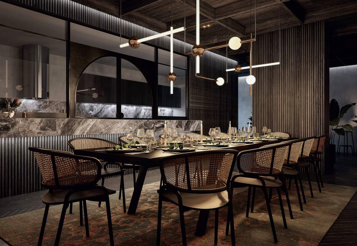 – Exquisite private dining room with a professionally equipped chef’s kitchen