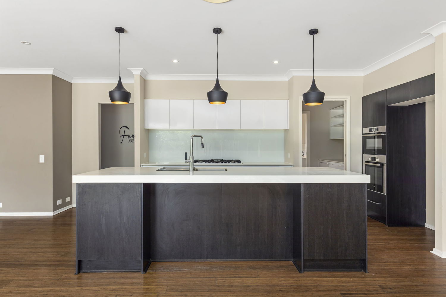 # Modern and expansive chefs kitchen with high-end Bosch appliances inclusive of dishwasher, rangehood & double stacked oven and 900mm gas cooktop. Large sized plumbed fridge cavity, plenty of storage to cupboards and drawer &, ample bench space to island bench which doubles as a breakfast bar.