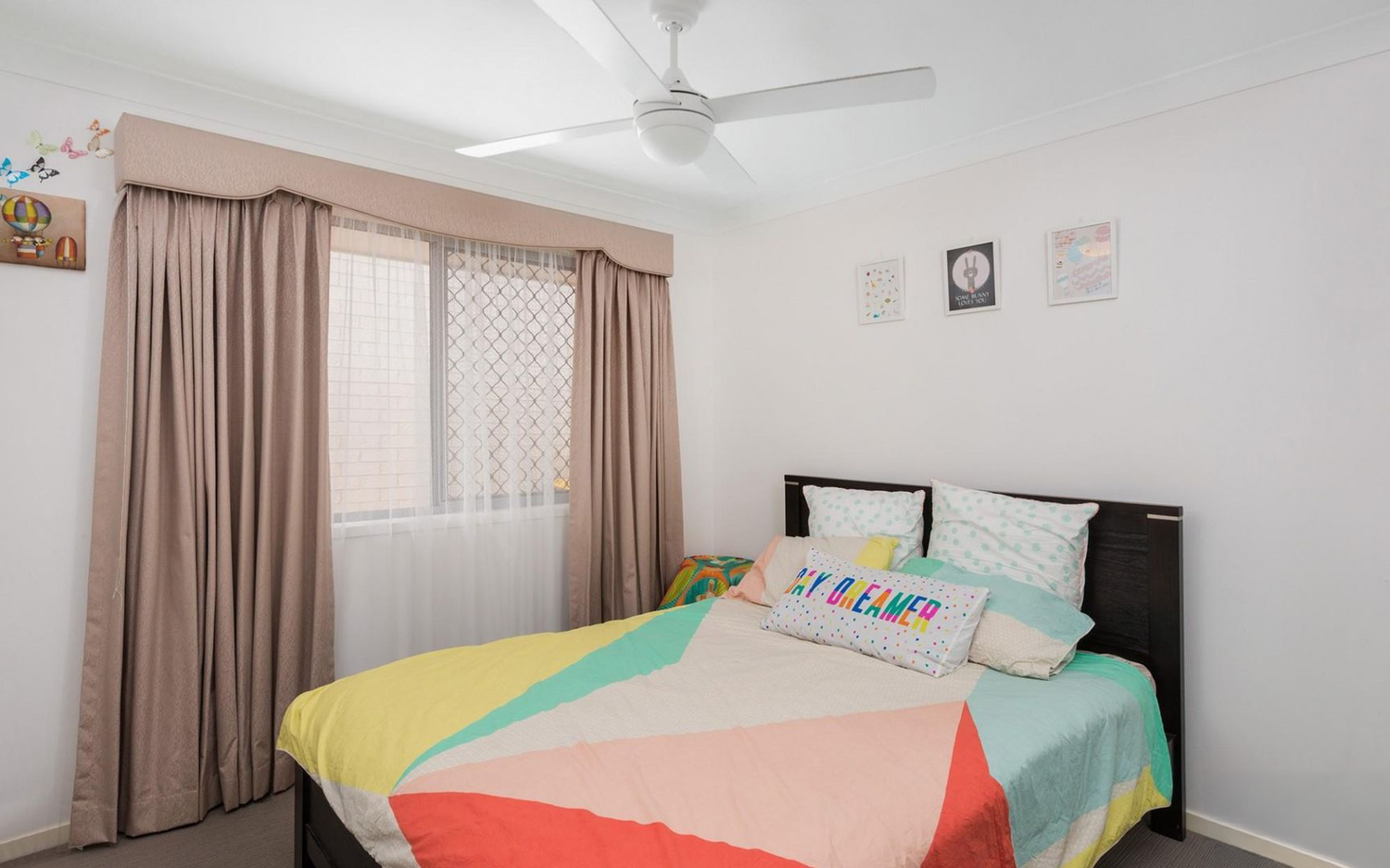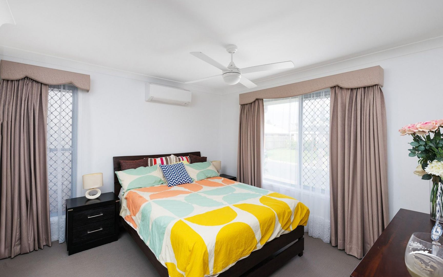 # Three bedrooms with built-ins and fans, main with ensuite