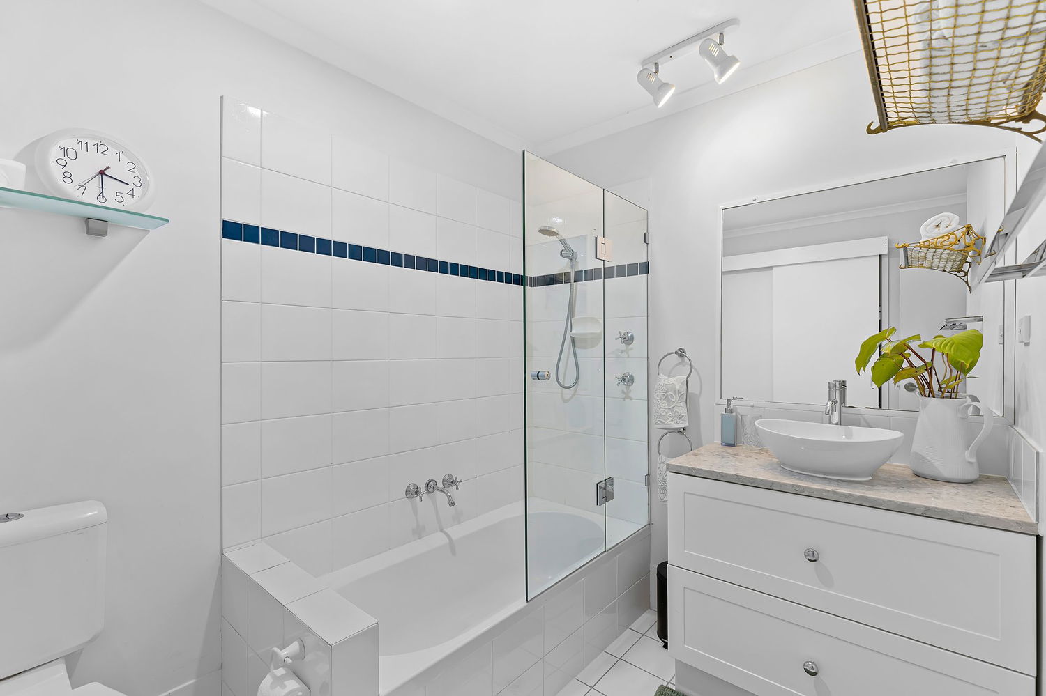 – Large, tiled courtyard including pergola with ceiling fan and light – great for entertaining and alfresco dining.