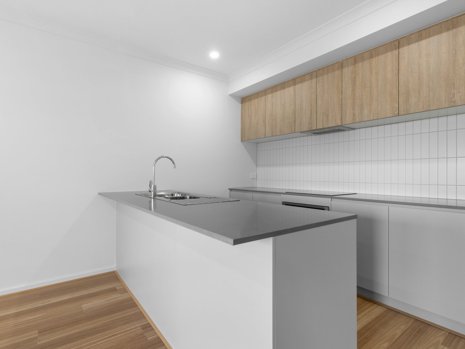 Kitchen: Modern kitchen fitted with a dishwasher, stainless steel oven, and cooktop for effortless meal preparation.