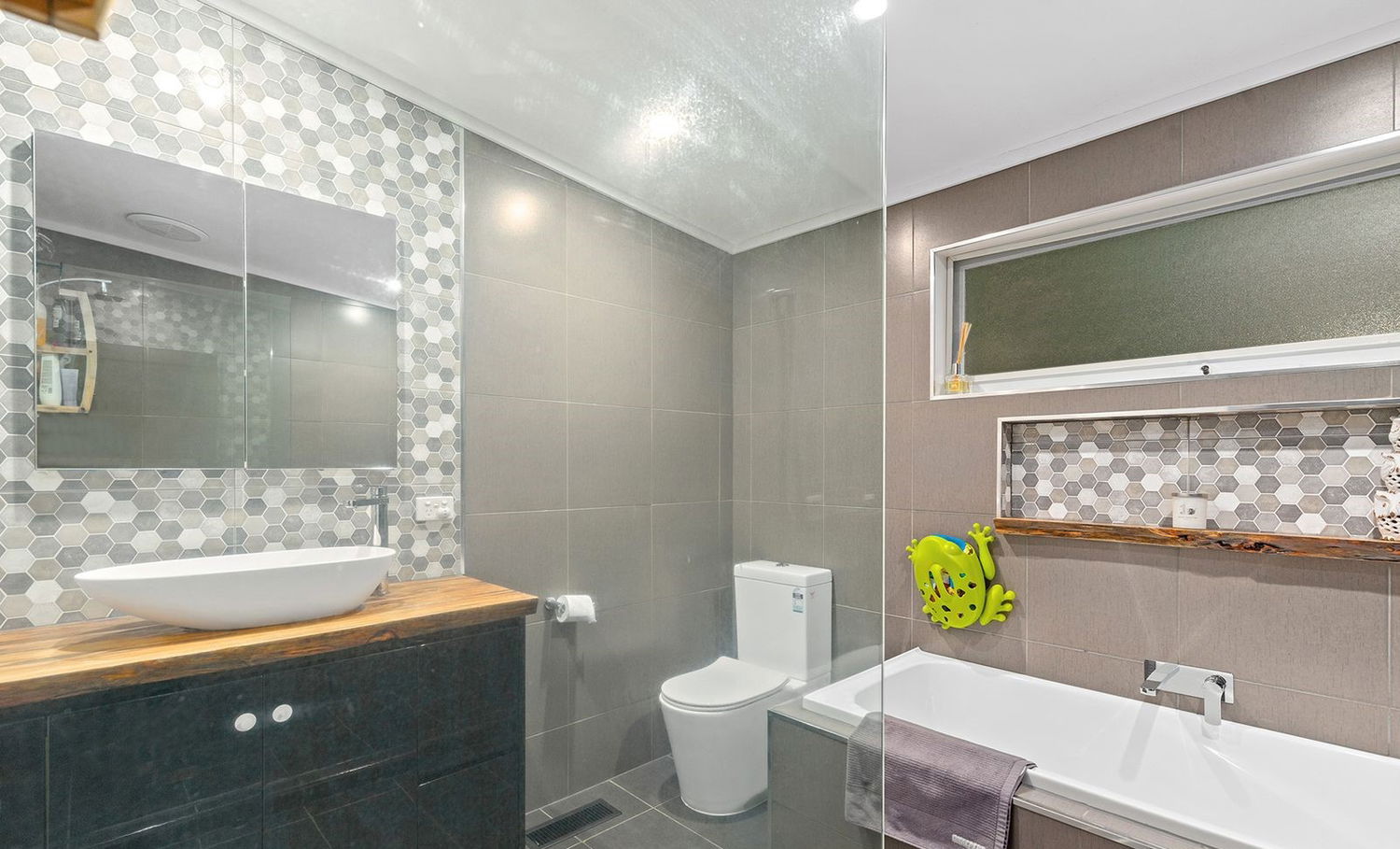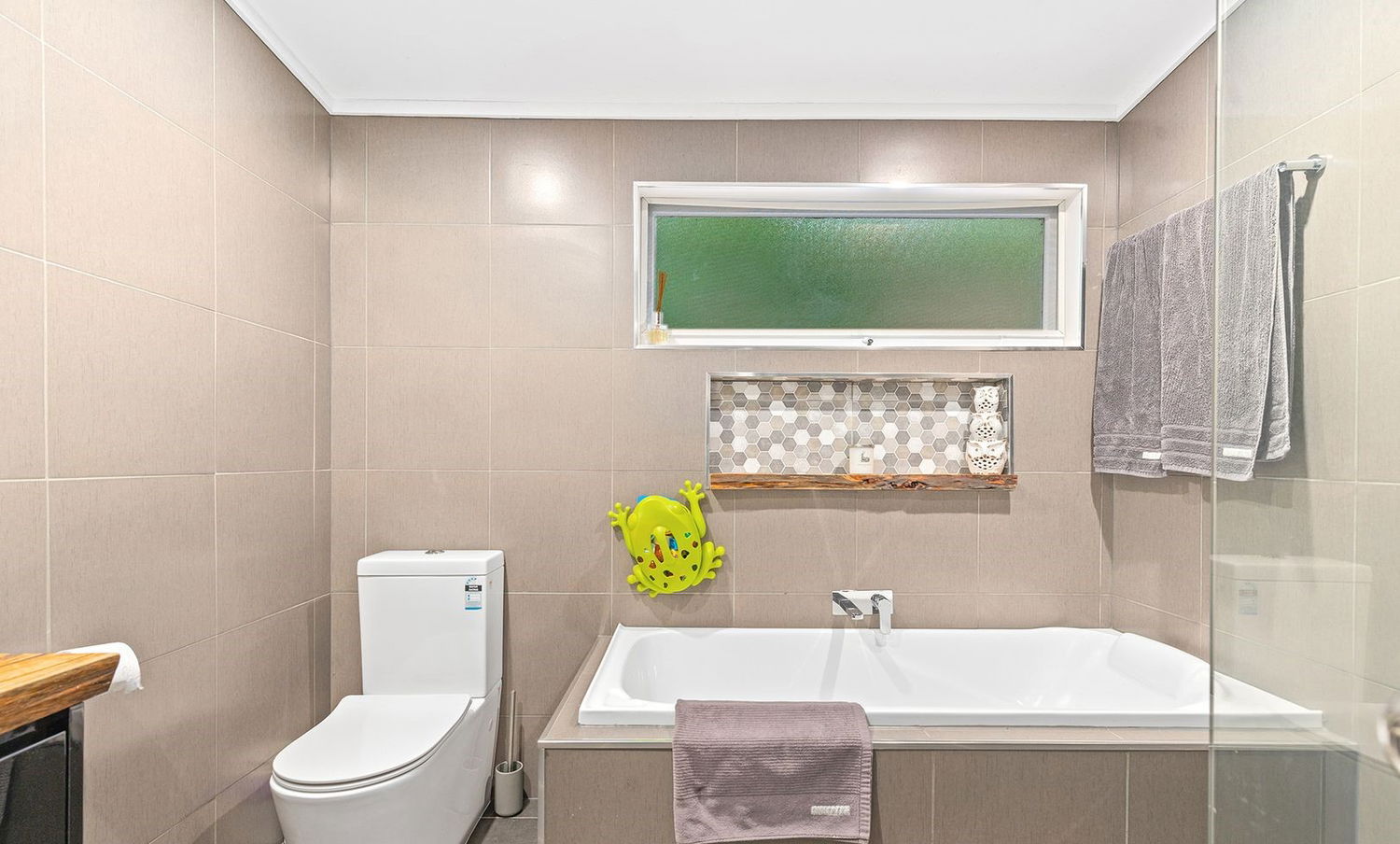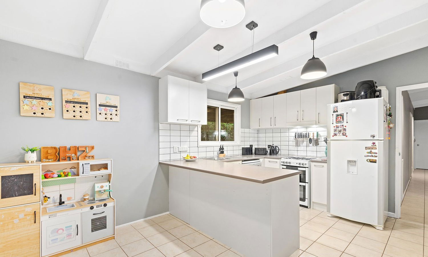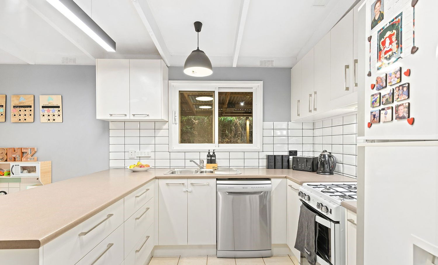 The house itself boasts ample space and natural light, with 4 spacious bedrooms providing plenty of room for the whole family. The modern bathroom is sleek and stylish, featuring high-quality fixtures and fittings. he meals area leads into the kitchen with sleek white cabinetry, subway tiles, and gas range ideal for the cooks of the household. Entertaining can spill outdoors to the large, covered deck and level lawn area.
