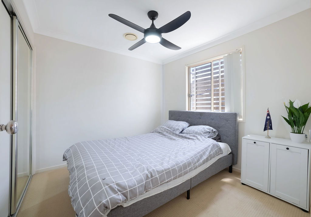 # Second and third bedrooms with ceiling fans and built-in robes.