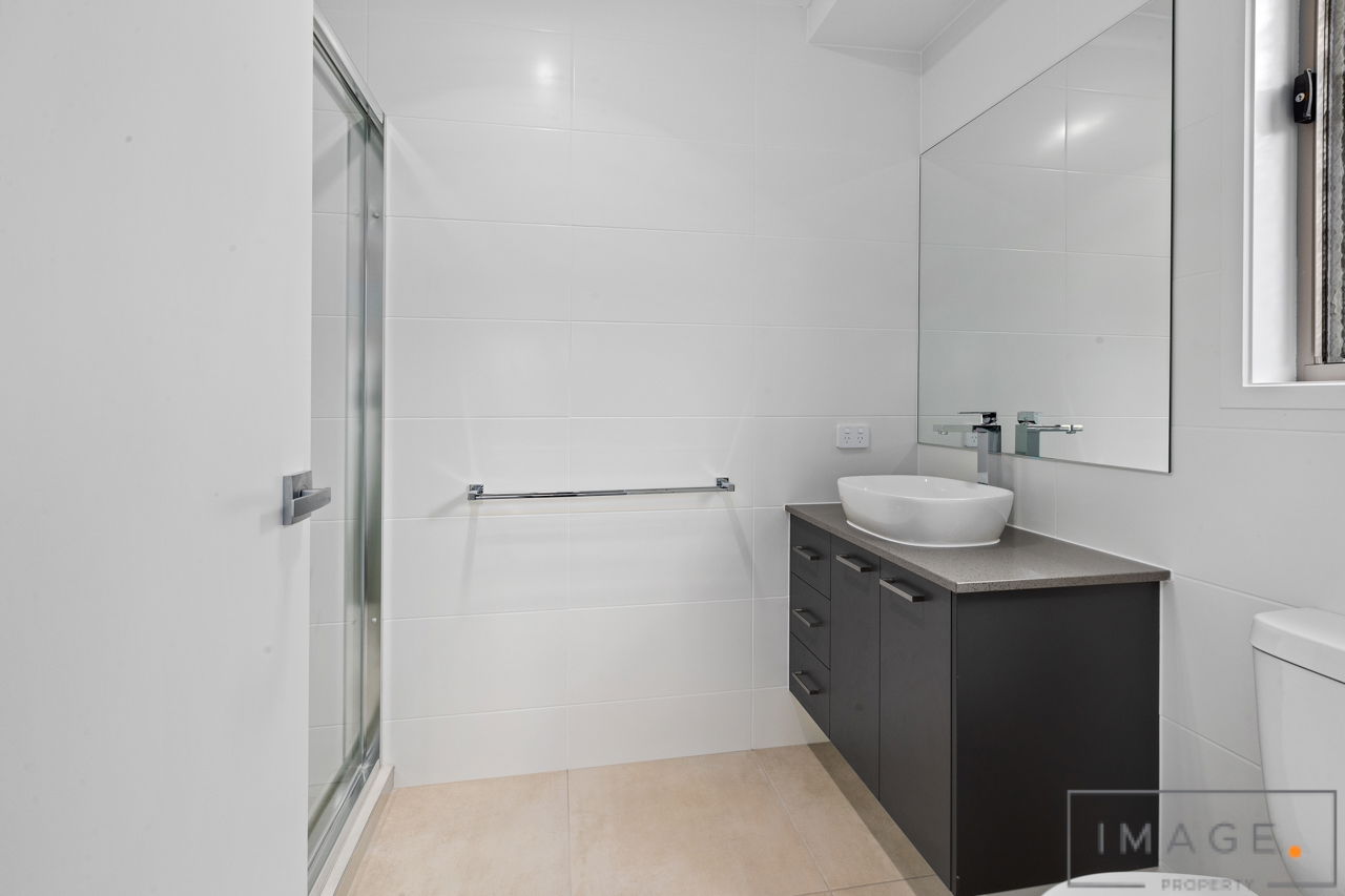 # Ensuite with large shower cavity and storage to vanity.