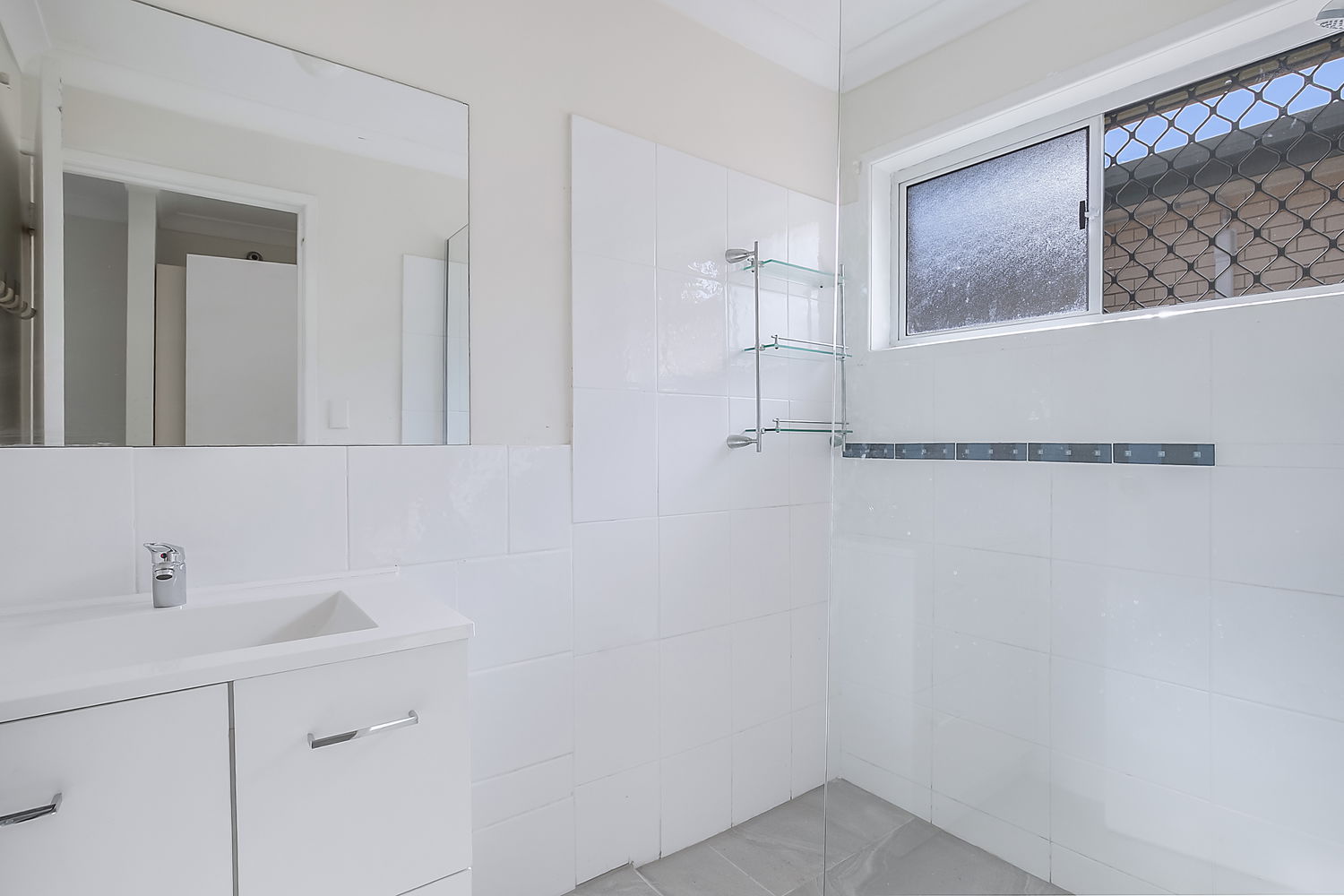# Main bathroom updated with ample storage to vanity, shower and separate toilet