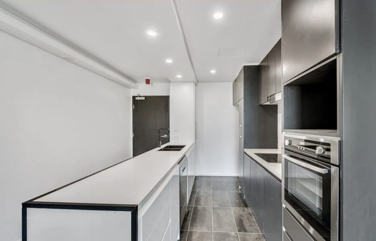 # Modern Kitchen with ample cabinetry space and electrical appliances