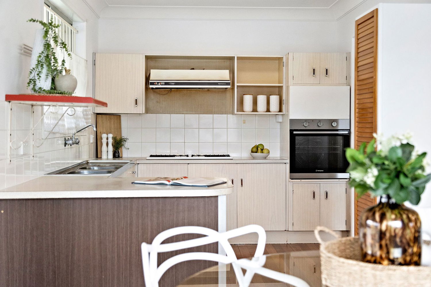 # Well-appointed kitchen with a gas cooktop and electric oven, and ample bench and storage options.