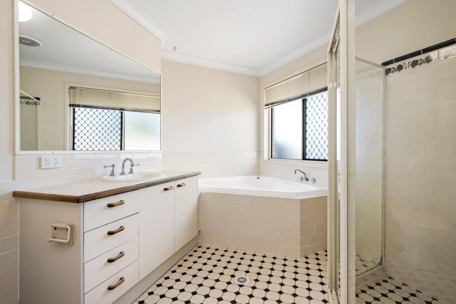 # Main bathroom with separate shower, bath, toilet and external vanity