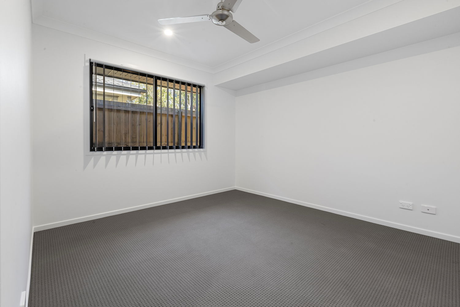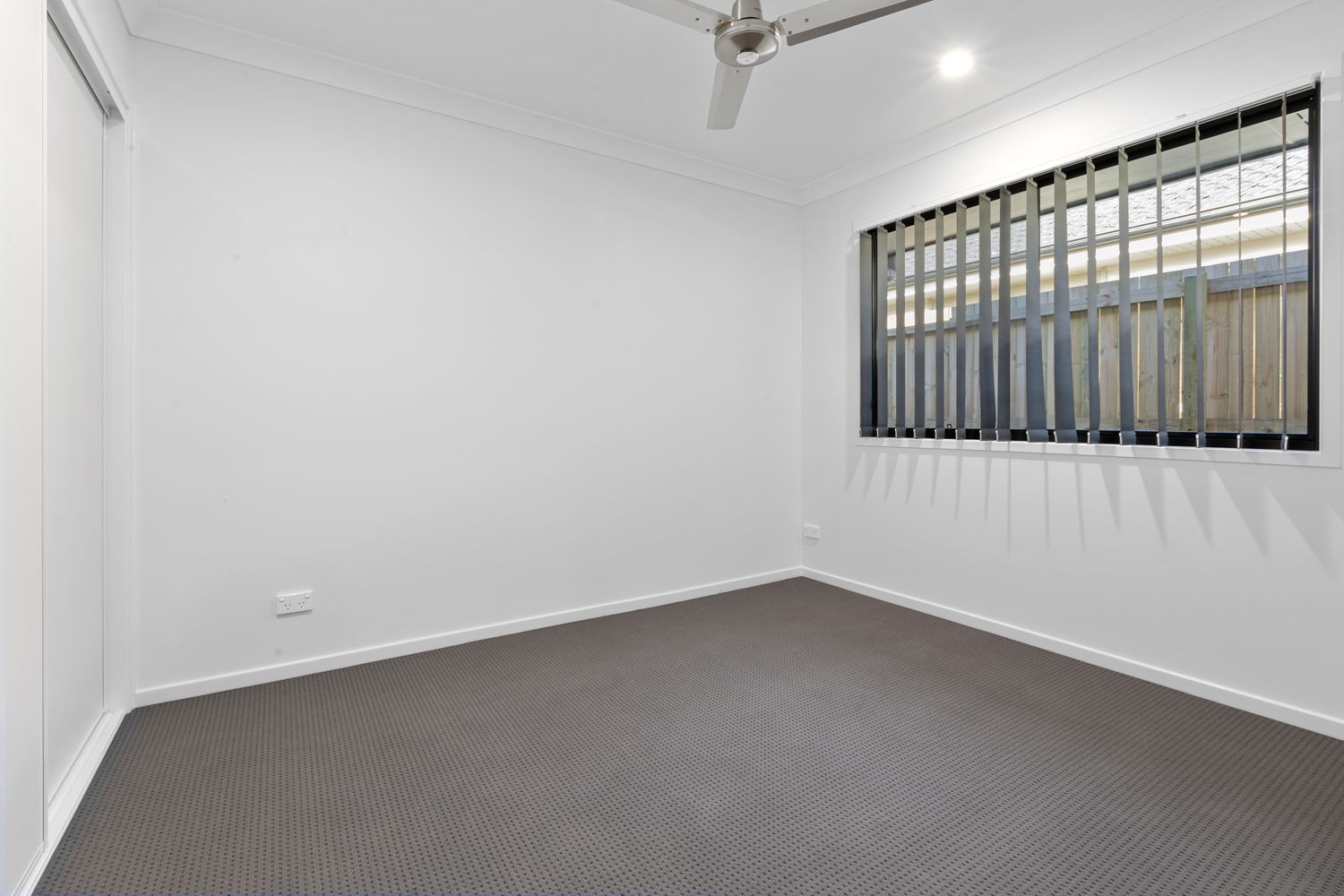 # Second bedroom with ceiling fan and built-in wardrobe