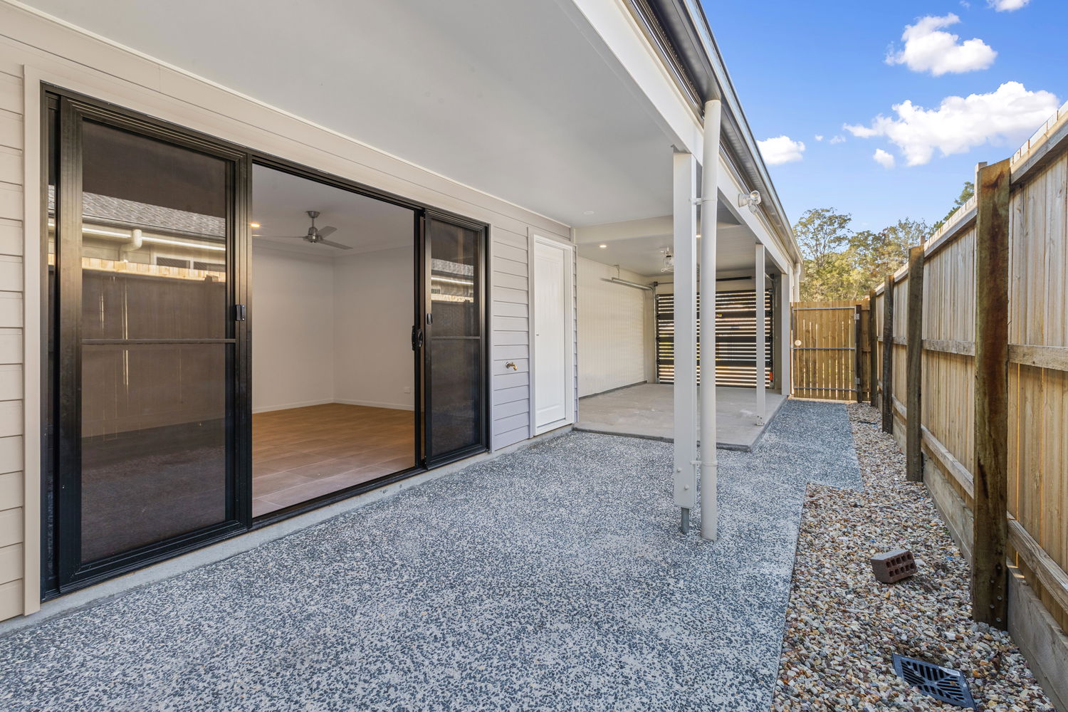 # Outside covered patio area and fully fenced yard