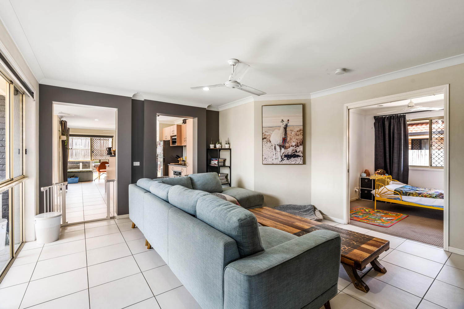 # Separate dining area and living areas, tiled throughout