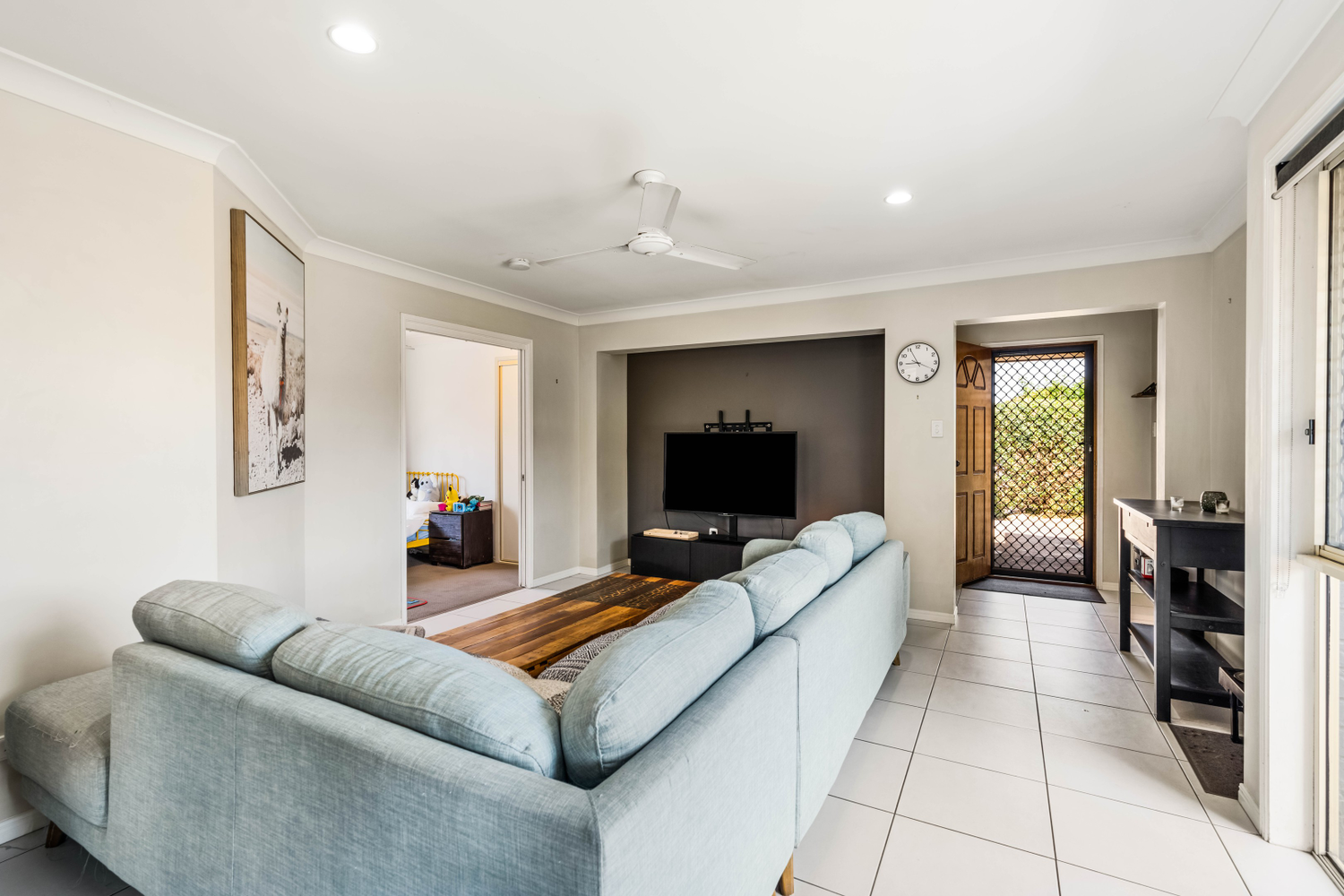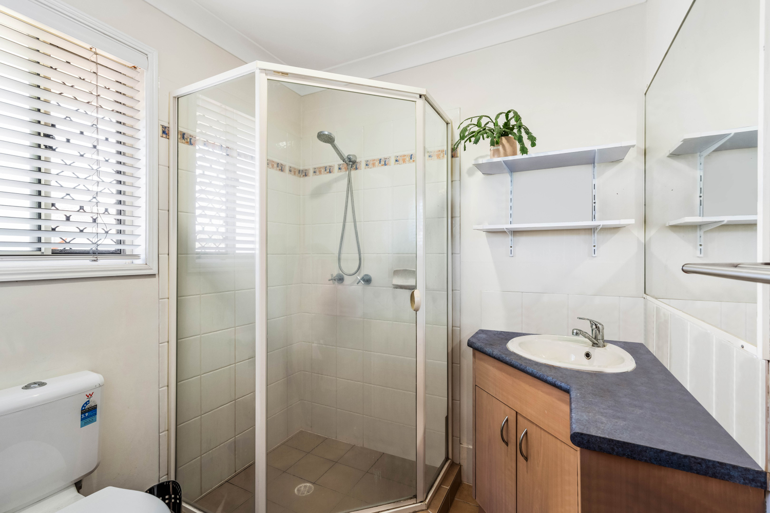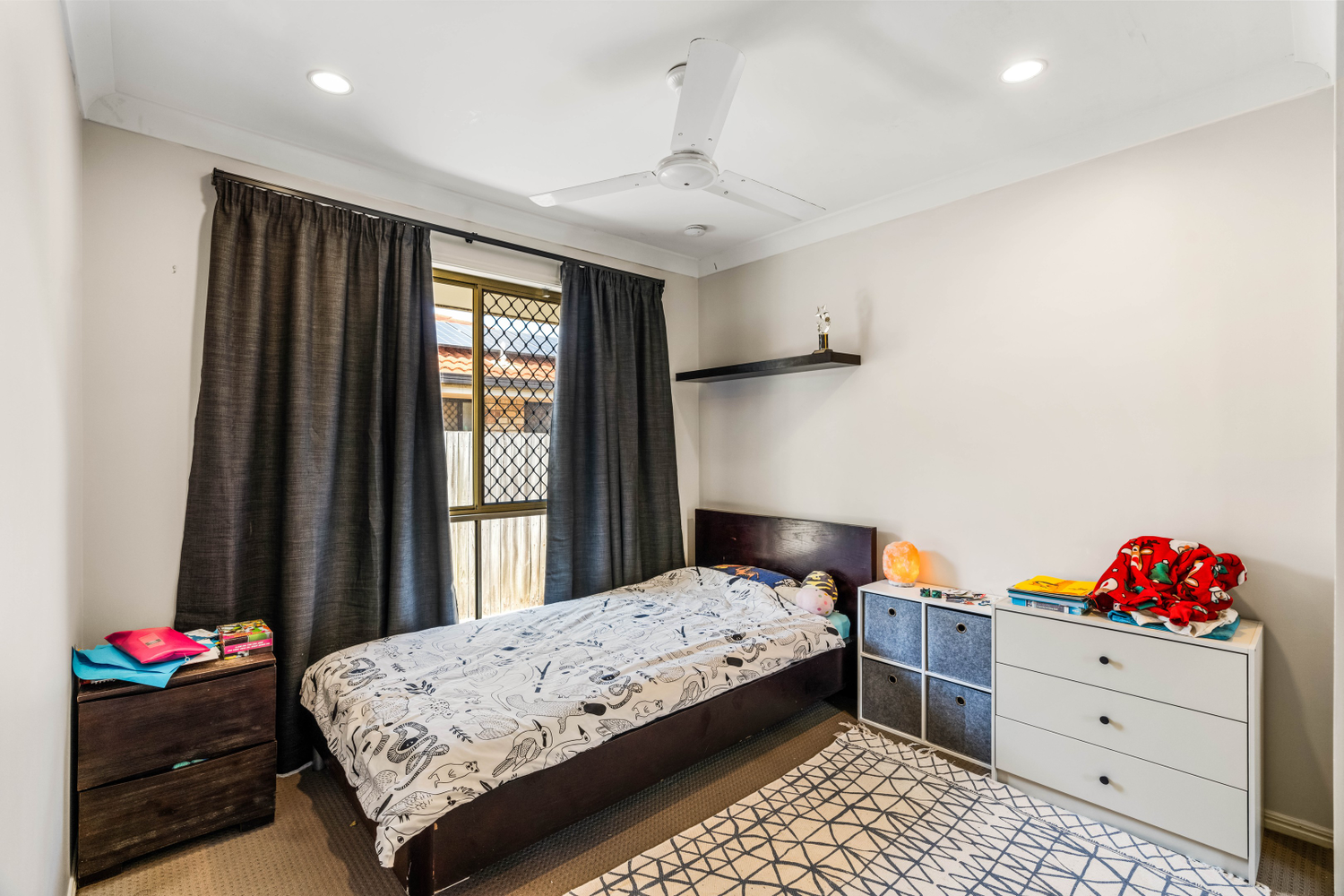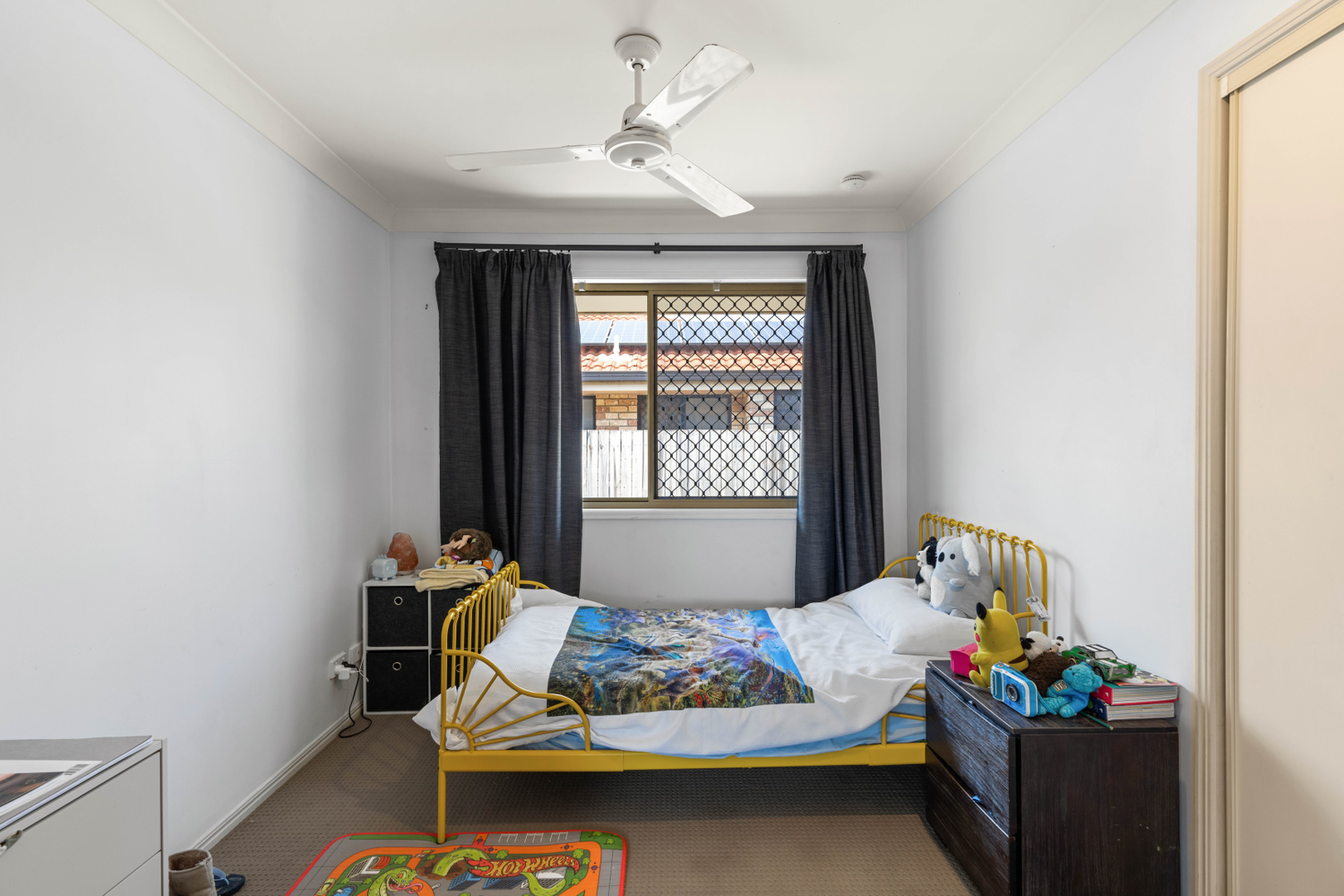 # Main bedroom with ceiling fan, security screens and built in wardrobes