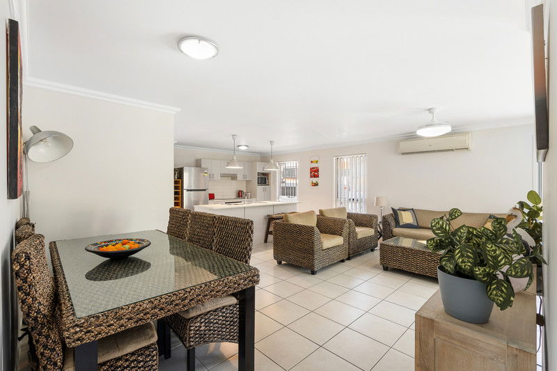 The heart of the home is complemented by a well-appointed kitchen that flows effortlessly into the dining area, making mealtime a breeze. Natural light pours in through large windows, enhancing the cheerful ambiance.