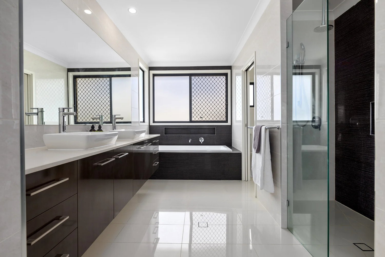 – Three modern bathrooms with contemporary finishes