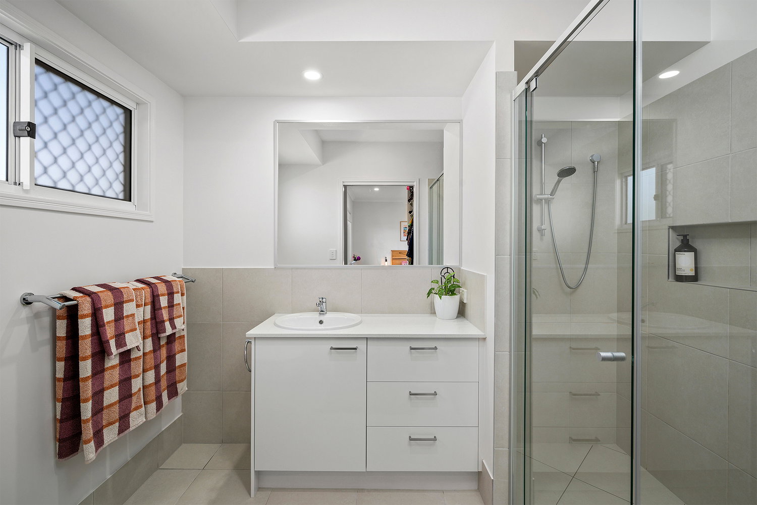 # Ensuite with large double shower space and ample storage to vanity.
