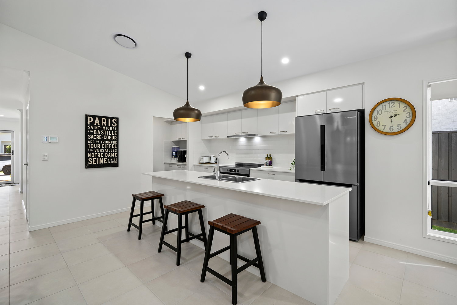 # Modern and expansive chefs kitchen with high-end appliances inclusive of dishwasher, rangehood, oven & cooktop . Large sized fridge cavity, plenty of storage to cupboards, ample bench space to island bench which doubles as a breakfast bar.