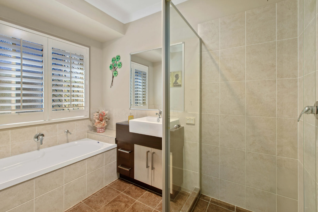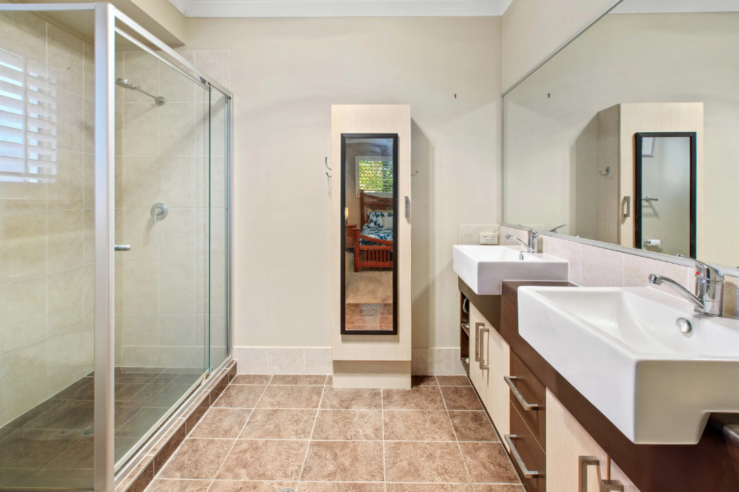 # Ensuite with single shower cavity, double basin and ample storage to vanity.