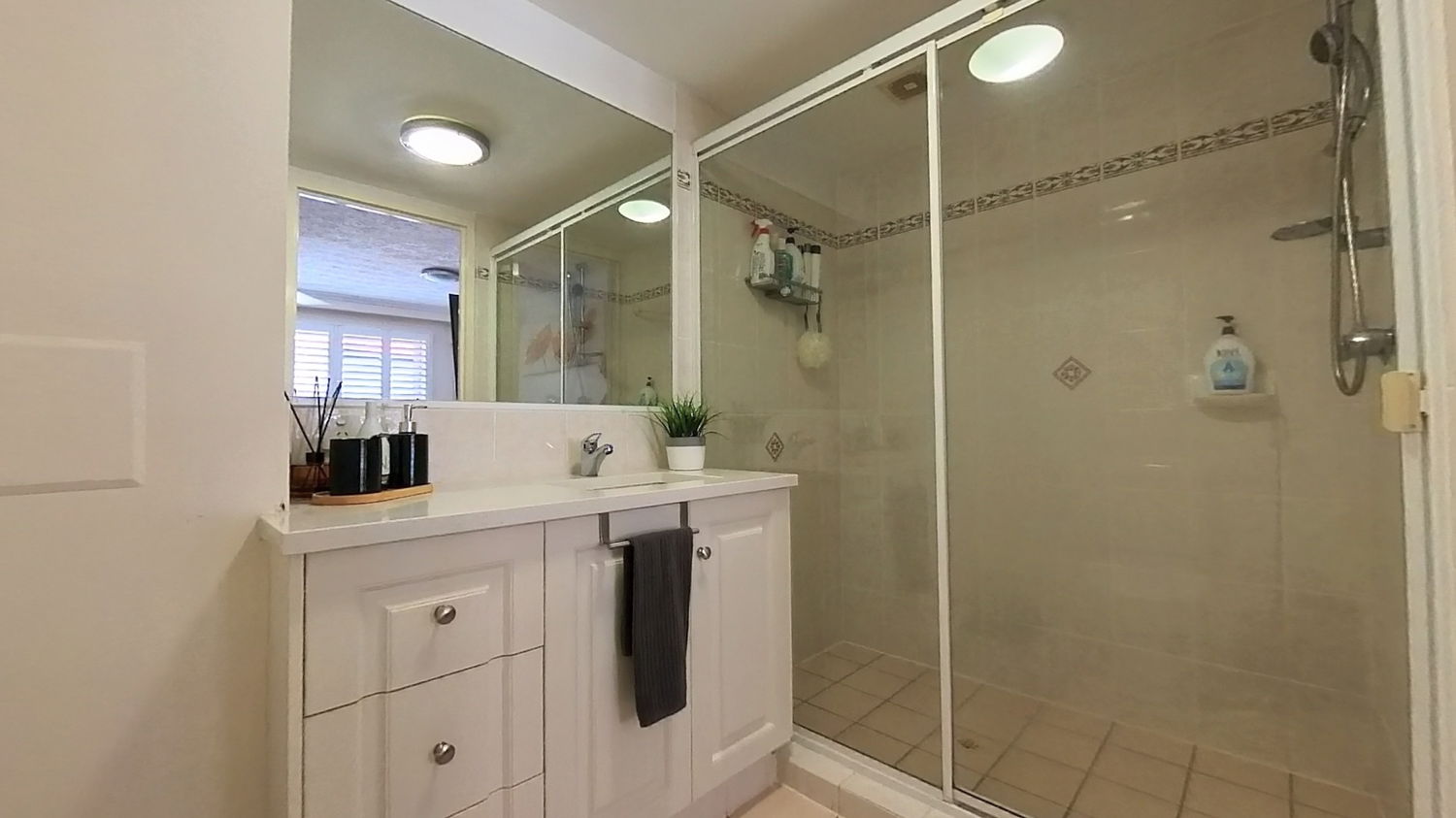 • Main bedroom with ensuite, ceiling fan, air conditioning, and private balcony access