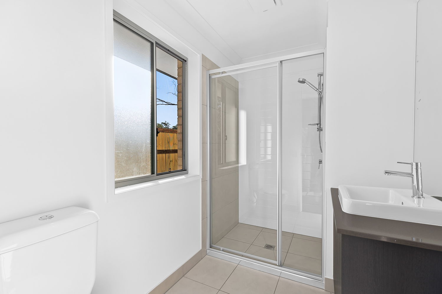 # Ensuite with large shower cavity and ample storage to vanity.