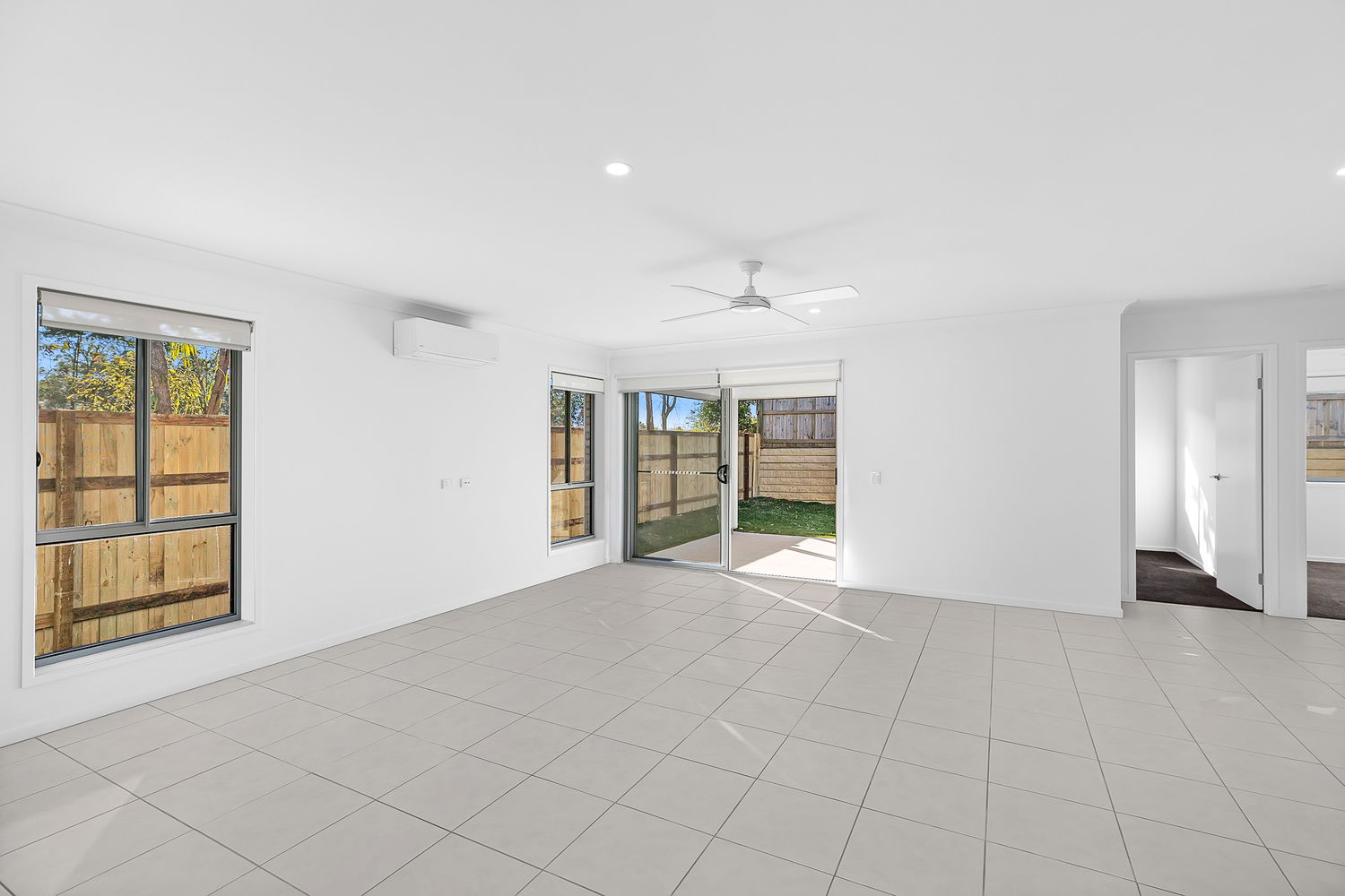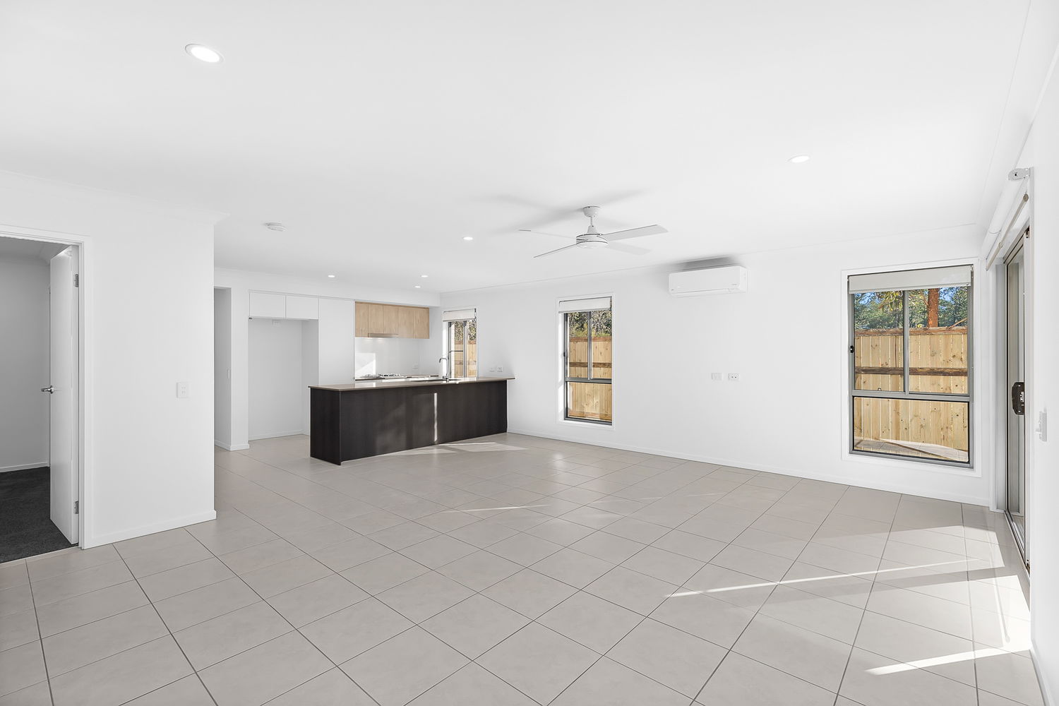 # Open plan living and dining with ceiling fans and air-conditioning – area opening to covered entertaining patio