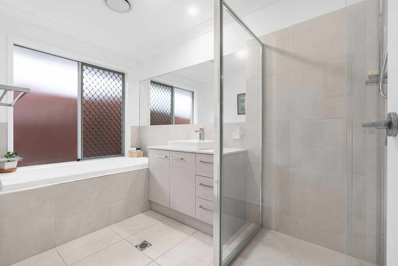 # Large Main Bathroom with ample storage to vanity and large shower cavity with separate bathtub.