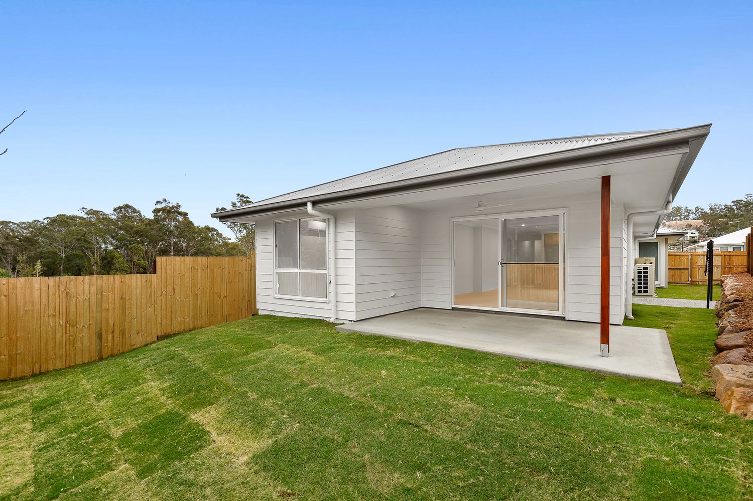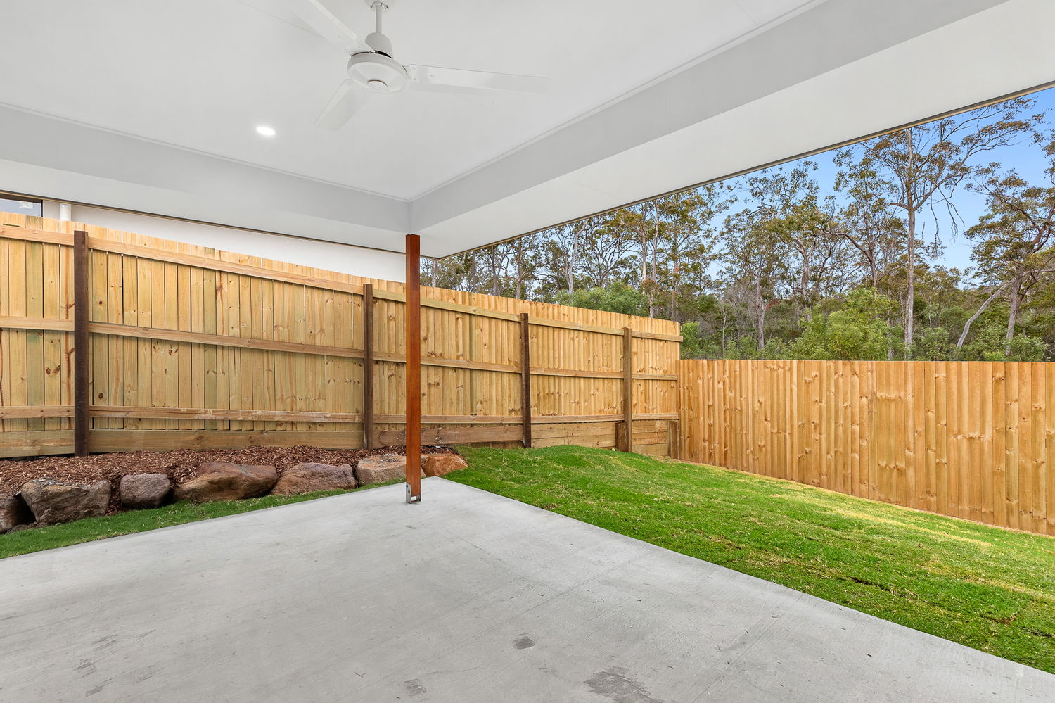 # Open plan living and dining with ceiling fans and air-conditioning – area opening to covered entertaining patio