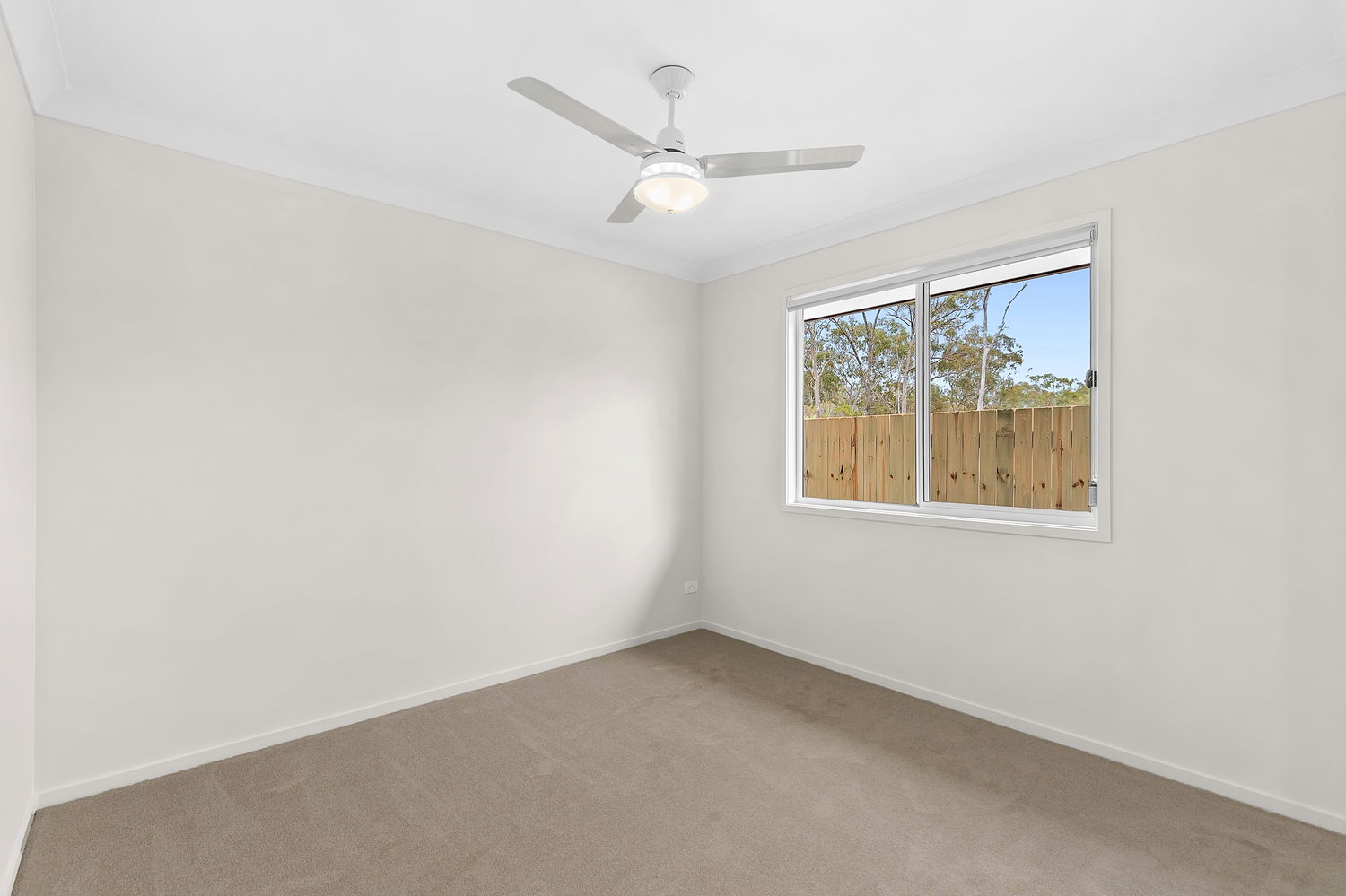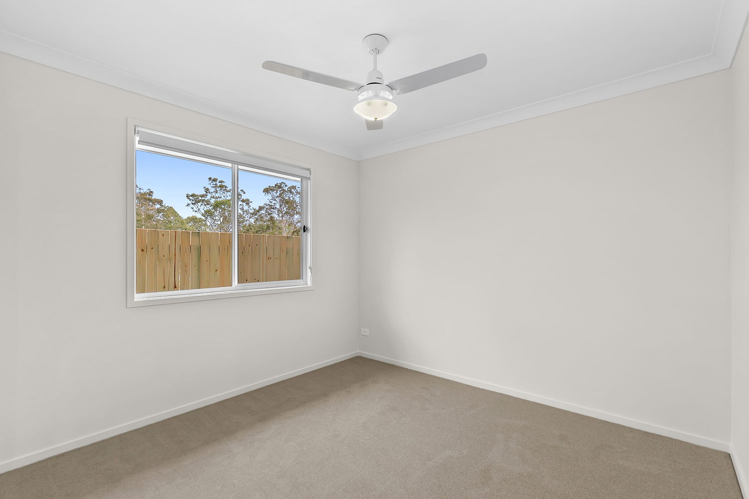 # Fourth bedroom with ceiling fan and built-in robe
