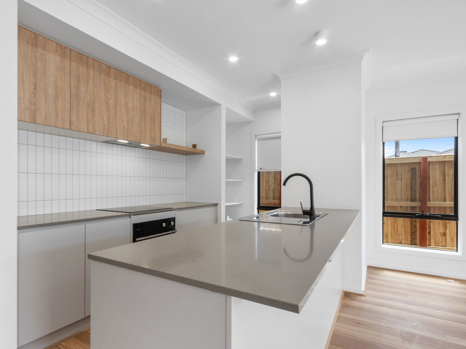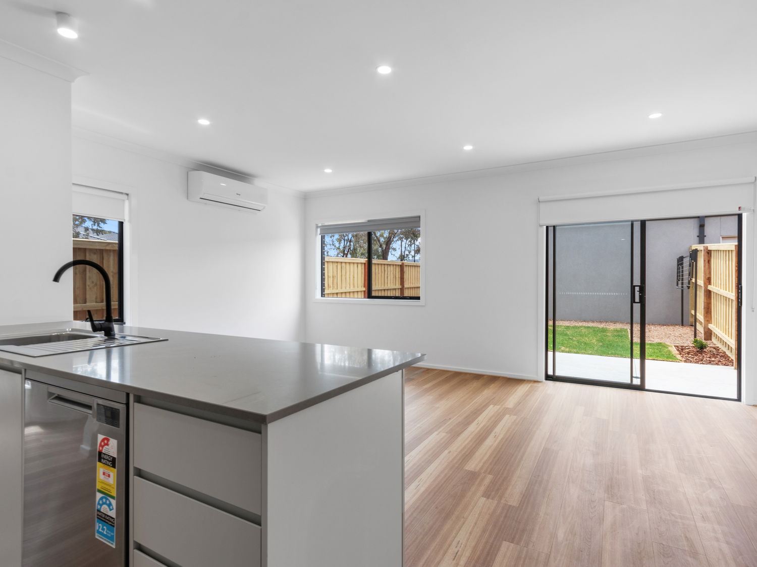 The ground floor includes a versatile bedroom with ensuite near the entry, ideal for guests, a home office, or multigenerational living. The open-plan living and dining area is bright and airy, with timber floors and a seamless connection to the private rear courtyard. The sleek kitchen features an expansive walk-in pantry, electric appliances, a dishwasher, and ample storage, making everyday living and entertaining a breeze.