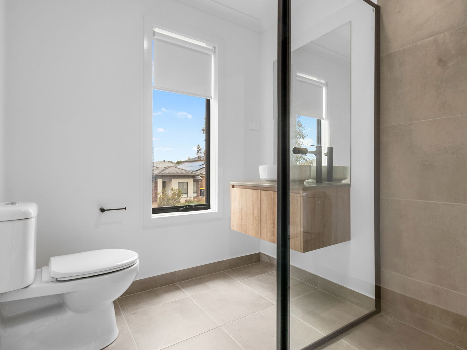 Upstairs, you’ll find three spacious bedrooms, each with built-in robes. The master suite offers a walk-in robe and a modern ensuite with stylish finishes. A dedicated study nook upstairs is perfect for working from home or studying, separate from the main living areas. The other bedrooms share a contemporary central bathroom with neutral tones and quality fittings.