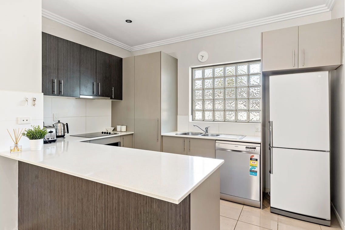 # Modern kitchen with stone benchtops, stainless steel appliances with dishwasher
