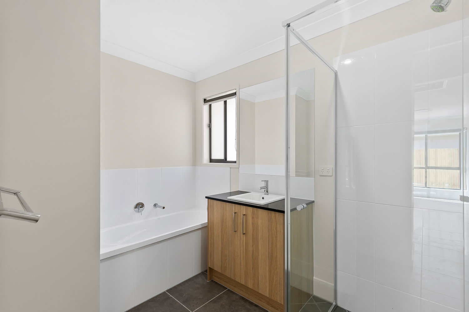 # Main bathroom with single shower cavity, separate bath and separate toilet